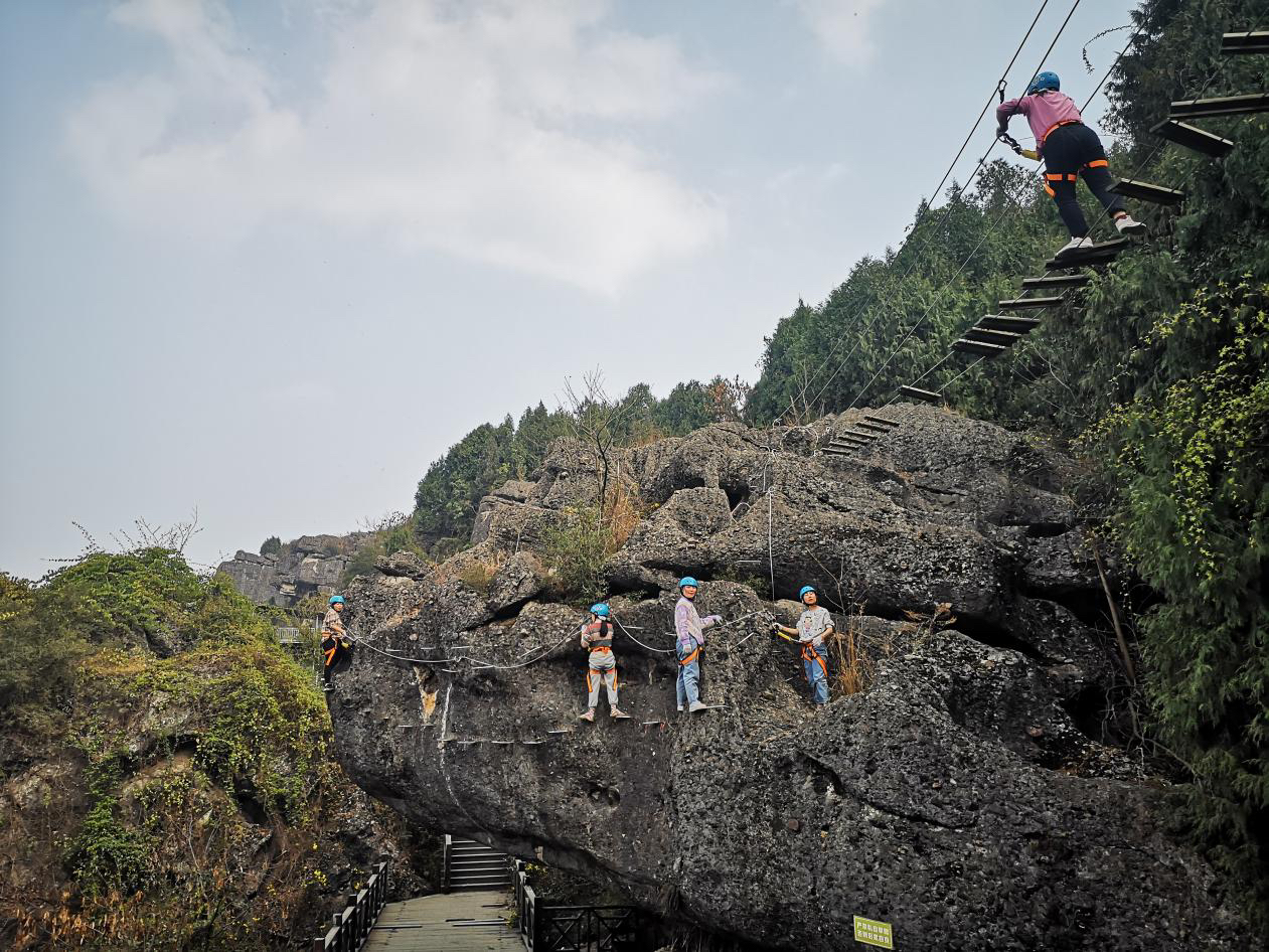基地内地况丰富,植被茂密,景色秀丽,现已开放飞拉达、攀岩、山地车、滑翔伞、跳楼机、CS、民宿、帐篷酒店、星空营地、垂钓,水果采摘等众多项目,涵盖了户外运动、亲子旅游、农耕体验等多个方面,是省内少有的水陆空综合性户外运动基地。目前,基地每天可接纳约1000个家庭,近2000人参与户外活动,集安全性、多样性、趣味性于一体。富有挑战的攀岩线路,体验感极强的滑翔伞、激情澎湃的山地越野车,优美的风景和清新的空气,成为户外爱好者的网红打卡点,是户外运动旅游五星级线路。趁着这个元旦小长假,一起来鹰嘴岩玩吧!