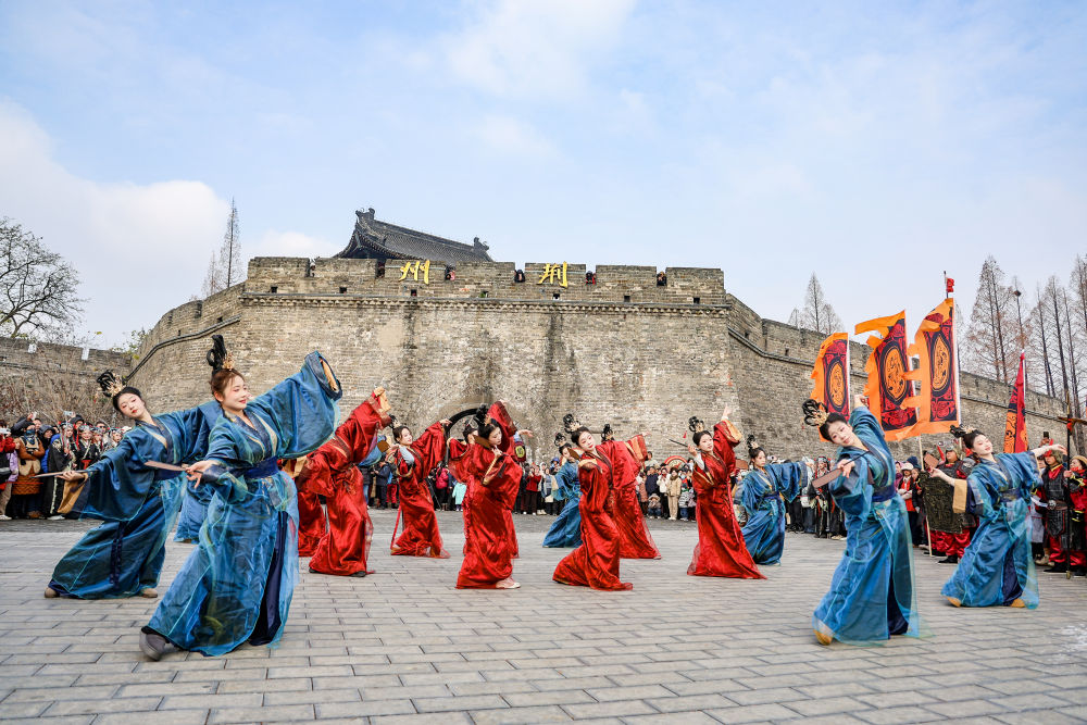 “荆州十二时辰”入城仪式在荆州古城上演。(张梦瑶 摄)