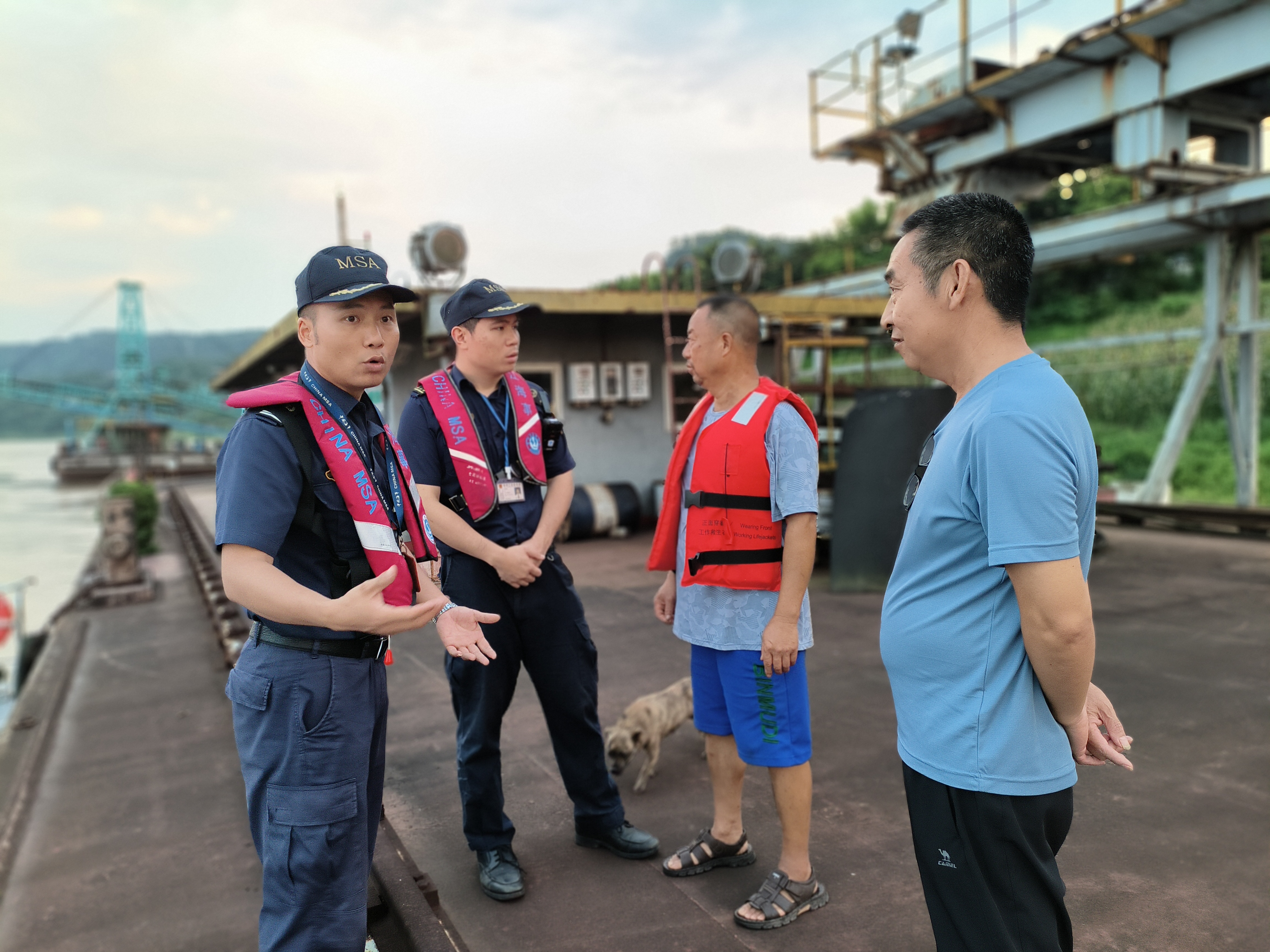“没想到这次洪峰水位比预报的还要高,谢谢纳溪海事指导我们船厂在距离洪峰来临前十五个小时,把在建的趸船安全顺利地移至水面抛锚定位,才保证这艘新建船舶安全渡过这轮洪峰,不然上千万财产就可能不保了。”谈起应对本轮洪峰,泸州江运船厂负责人对海事工作人员很是感激。