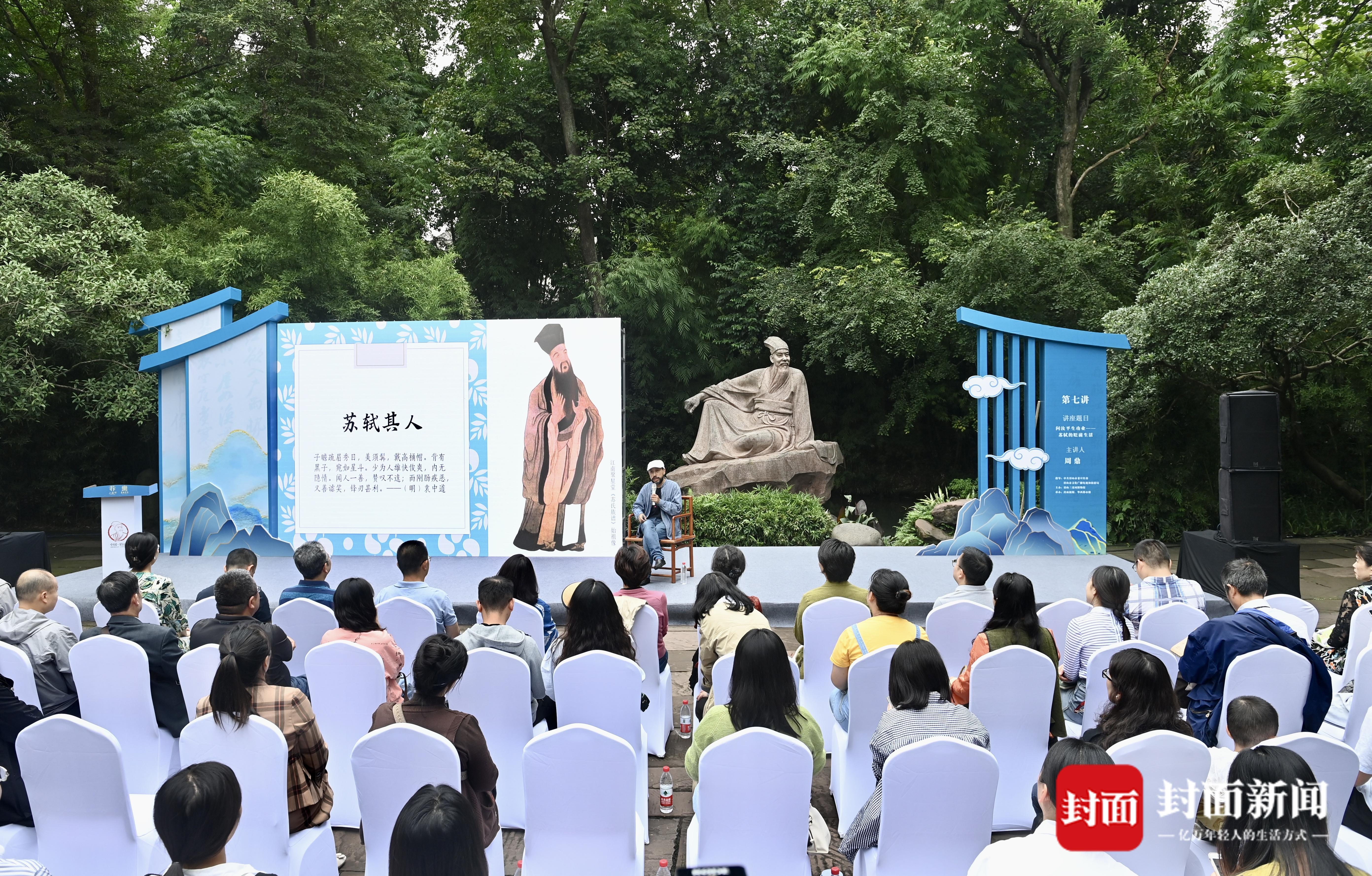 “大江东去,浪淘尽,千古风流人物。”9月26日下午,四川眉山三苏祠博物馆内,东坡盘陀像处传来朗朗诵读声。在“东坡大家讲”名家系列讲座第七讲中,四川大学历史文化学院教师、历史学博士、四川大学首届十大最受欢迎教师周鼎,以“问汝平生功业”为主题,用通俗易懂的语言,将苏轼沉浮的一生娓娓道来,并与大家齐诵《念奴娇·赤壁怀古》,氛围感十足。