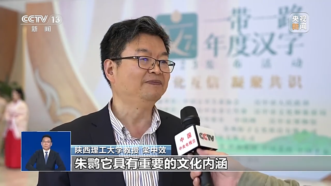 陕西理工大学教授 梁中效:朱鹮它具有重要的文化内涵,在中国的雅乐,朱鹮就是吉祥的符号。朱鹮是我们改革开放以来生物多样性保护的一个典型案例。