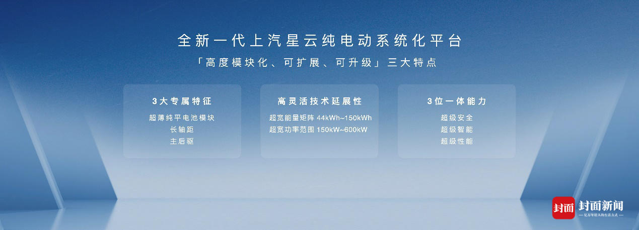 作为行业领先技术的集大成者,全新一代星云平台遵循“高度模块化、可扩展、可升级”的开发理念,具备超薄纯平电池模块、长轴距、主后驱的“3大专属特征”。其中,高灵活的技术延展性,可实现电池系统从44kWh~150kWh的超宽能量矩阵,驱动系统从150kW~600kW的超宽功率范围。
