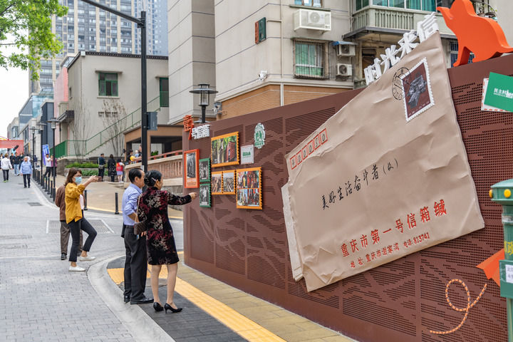 重庆市九龙坡区谢家湾街道民主村片区城市更新项目(一期)正式竣工亮相,市民游客前来打卡(2023年4月28日摄)。新华社记者 黄伟 摄
