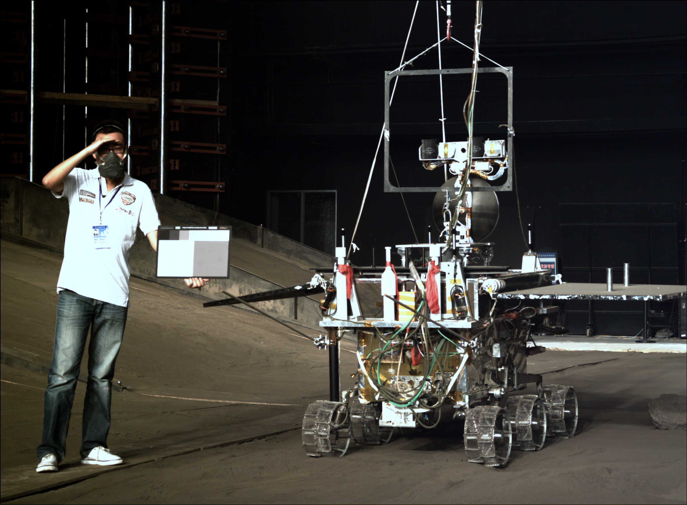 经过数天密集排故,最终相机故障初步定位,赵汝进根据月背温度、光照,目标方位等关系,周密制定了相机避免故障发生的新成像模式。2019 年 1 月 11 日,地形地貌相机在新工作模式下,顺利完成月面“两器互拍”。同时也首次获取了月背艾特肯盆地区域 360 度环拍彩色高清全景拼接图像。