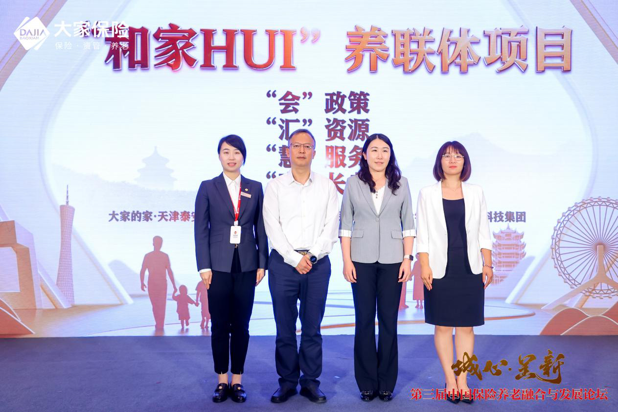 7月6日,第三届中国保险养老融合与发展论坛在天津举行,天津市和平区民政局局长丁华、大家的家·天津泰安道城心社区院长宗洁、南开大学教授祁艳玲、天津茵诺科技集团总经理张凤菊共同启动天津市和平区养联体服务项目“和家HUI”,通过四方共同努力,用智慧技术手段盘活区域养老资源,将养老政策和服务送到老年人身边,让老年人们获得真正的实惠,实现“会政策、汇资源、慧服务、惠长者”。