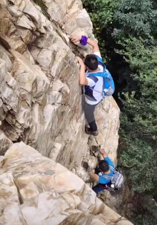 有网友分享道,猿人岩和鹰嘴岩两处坡度十分陡峭,几乎接近90度的垂直高度,而有些攀爬者几乎不做防护措施。“就是喜欢徒手攀爬的刺激感。”有网友在留言中分享自己攀爬体验,同时,有不少登山爱好者年纪并不年轻,与出事中的人物年龄相仿。