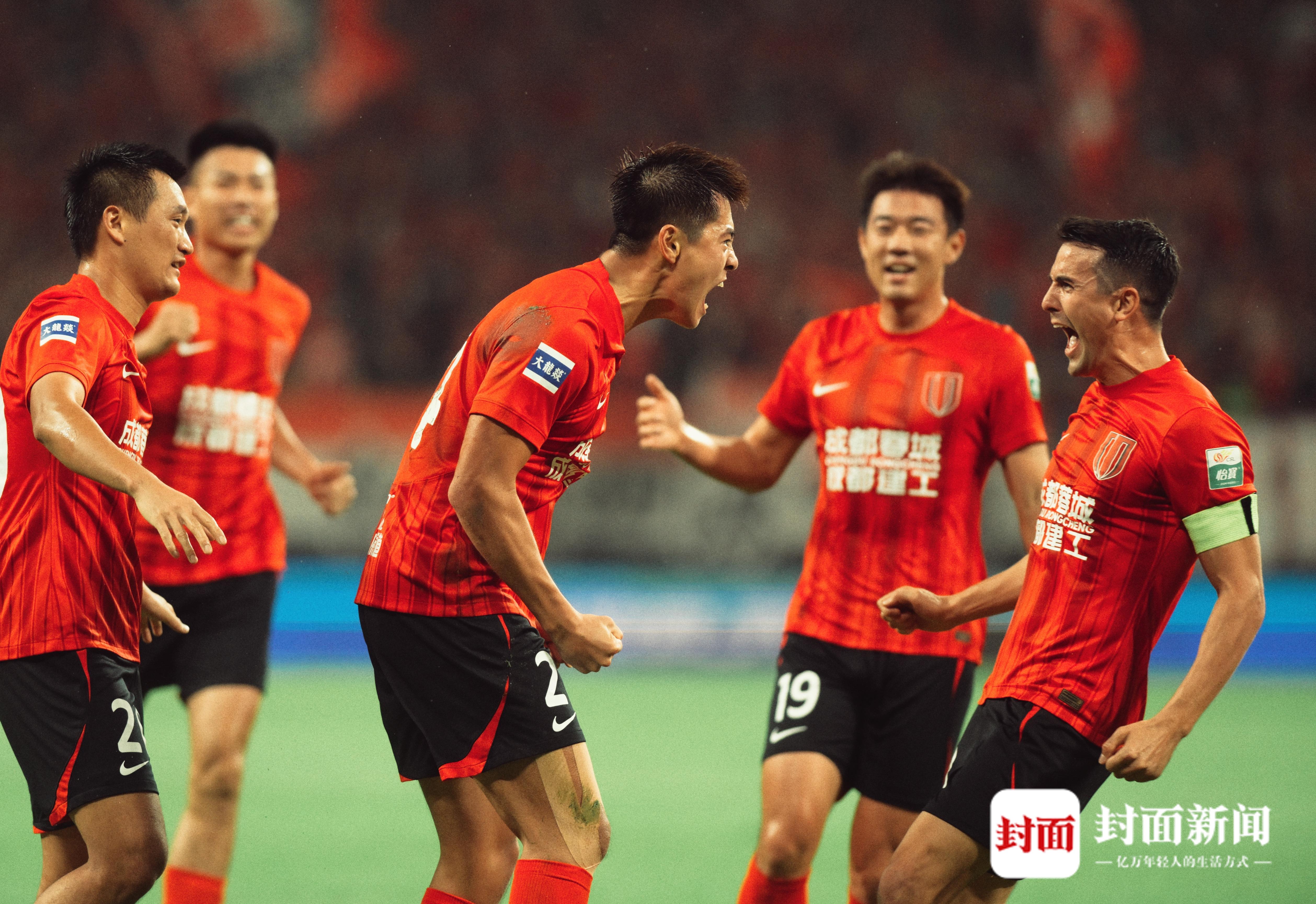 2024赛季,10月18日,成都蓉城主场力克上海海港,把领头羊拉下榜首。周定洋与队友庆祝进球。