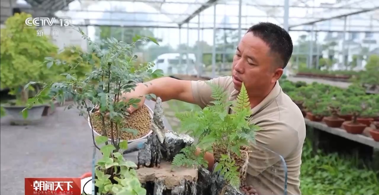 定制化服务也成为产业链延伸的重要方向。在扎下镇的艺森园艺工作室,工作人员正通过视频为客户设计阳台生态缸,讲解绿植、鱼石、造景的搭配方案,打造个性化家居景观。