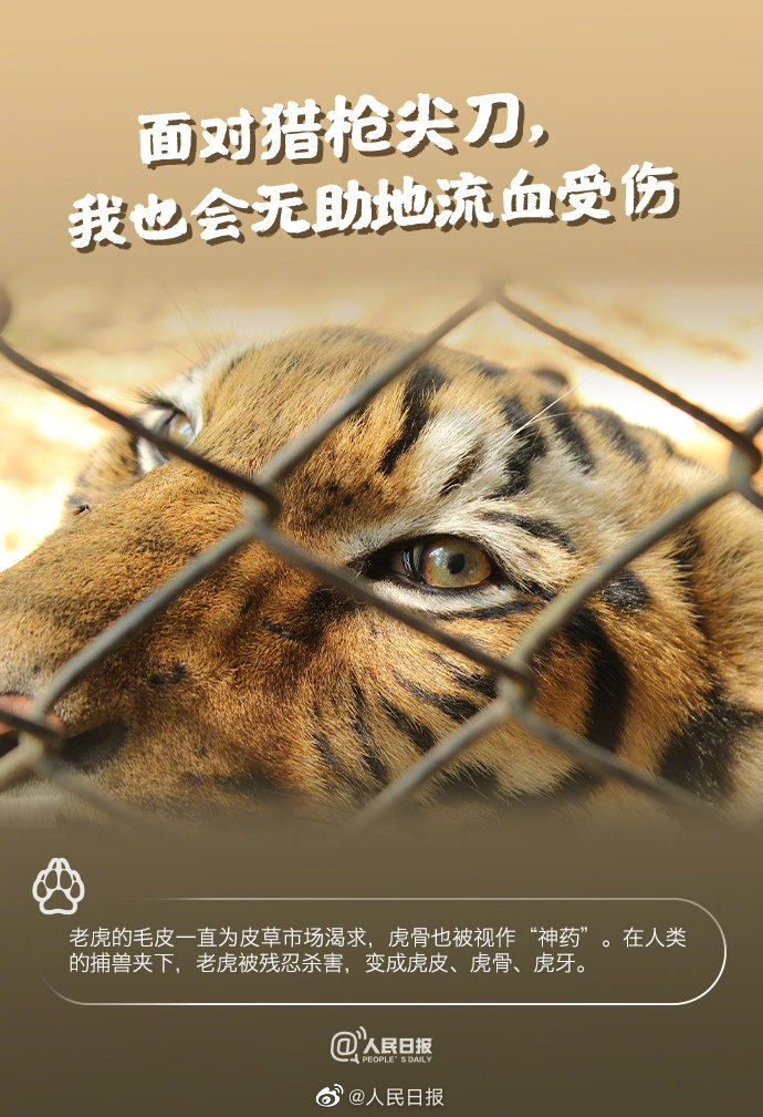 它是“百兽之王”,是威风的猎手;它曾有许多“兄弟姐妹”,却再也无法相见。过去一百年间,全球野生虎的数量从10万只锐减至约4000只,下降了97%。我国将虎列为国家一级保护野生动物,今天世界爱虎日,拒绝野生动物制品,拒绝动物表演!