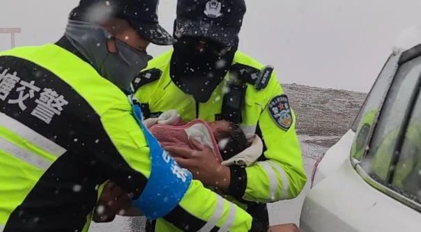 5月5日下午,四川甘孜州巴塘县德达乡海子山路段突降大雪,车流通行缓慢,执勤交警在疏导车流时接到群众求助,一名两个月大的婴儿口唇紫绀、呼吸困难。交警与孩子母亲简单交流后,初步判定婴儿是由于突发高反导致缺氧。