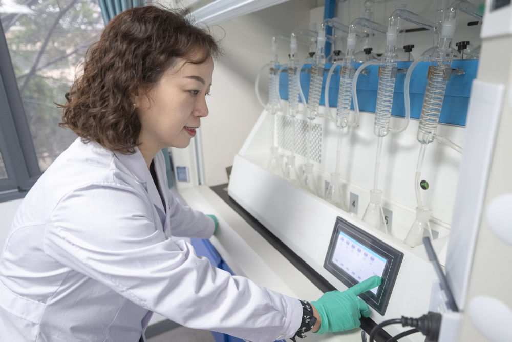 王琼在武汉宗关水厂化验室进行原水水质检验工作(2月20日摄)。