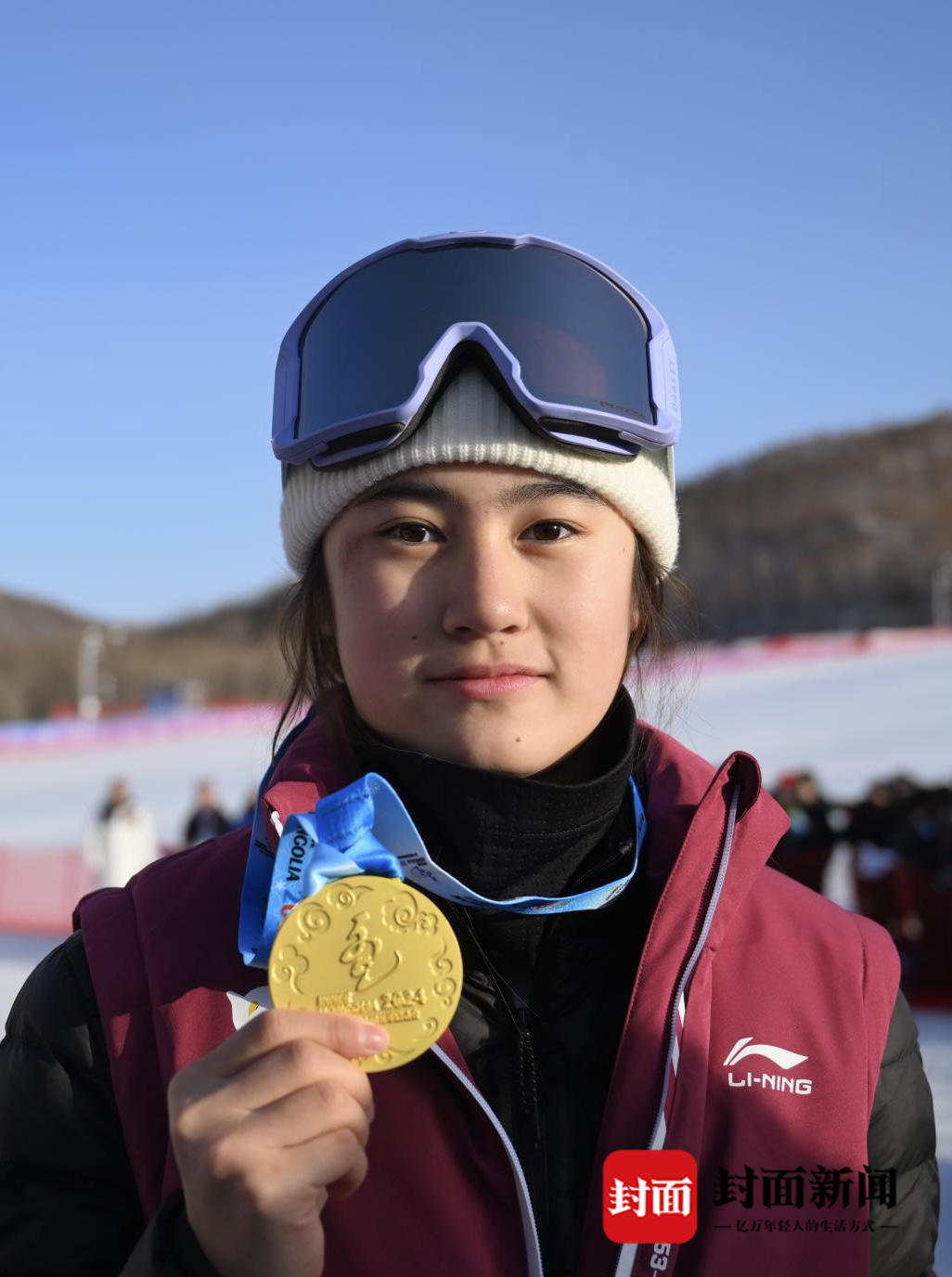 夺得金牌的四川滑雪运动员熊诗芮自信展示自己的金牌
