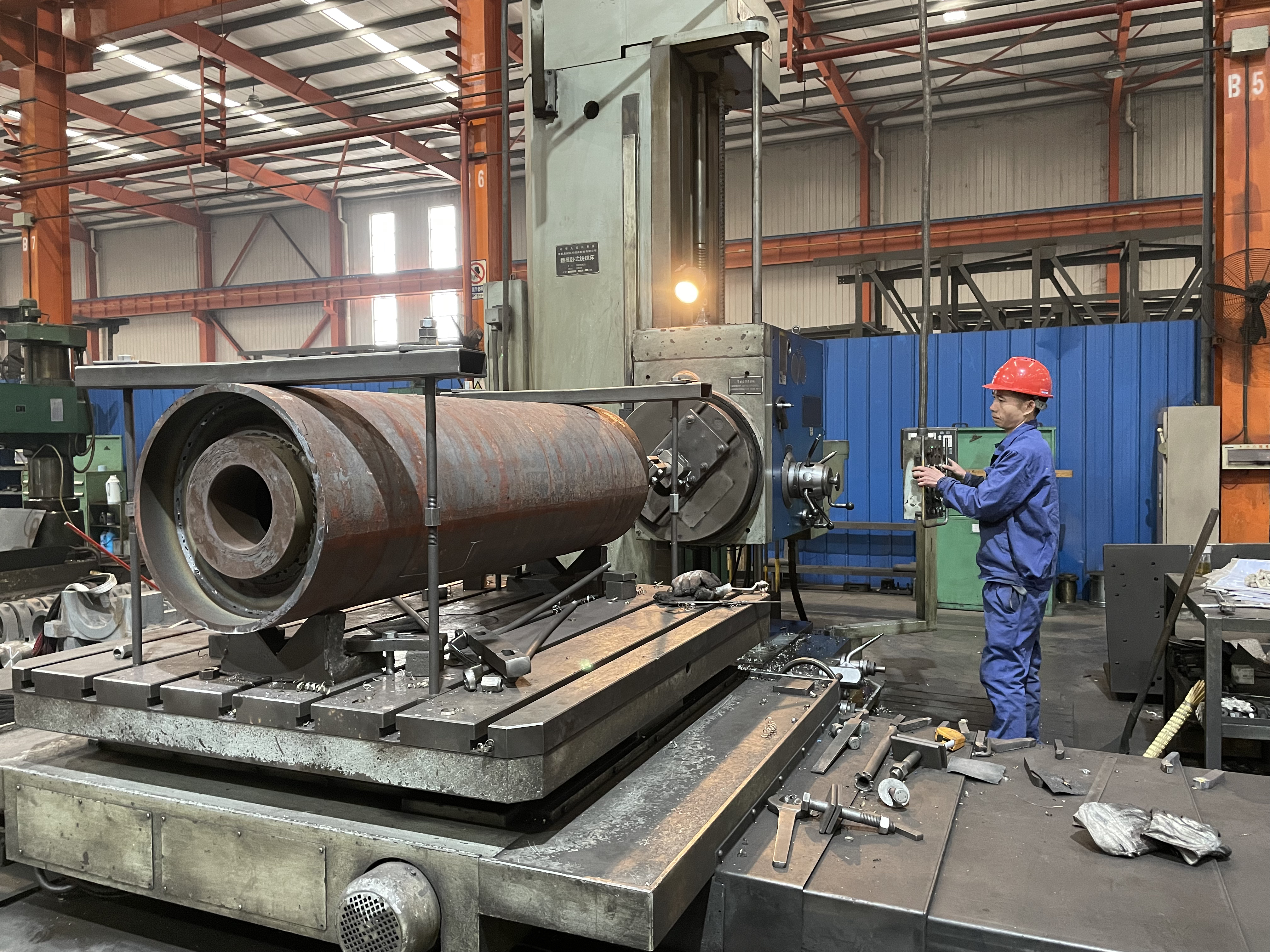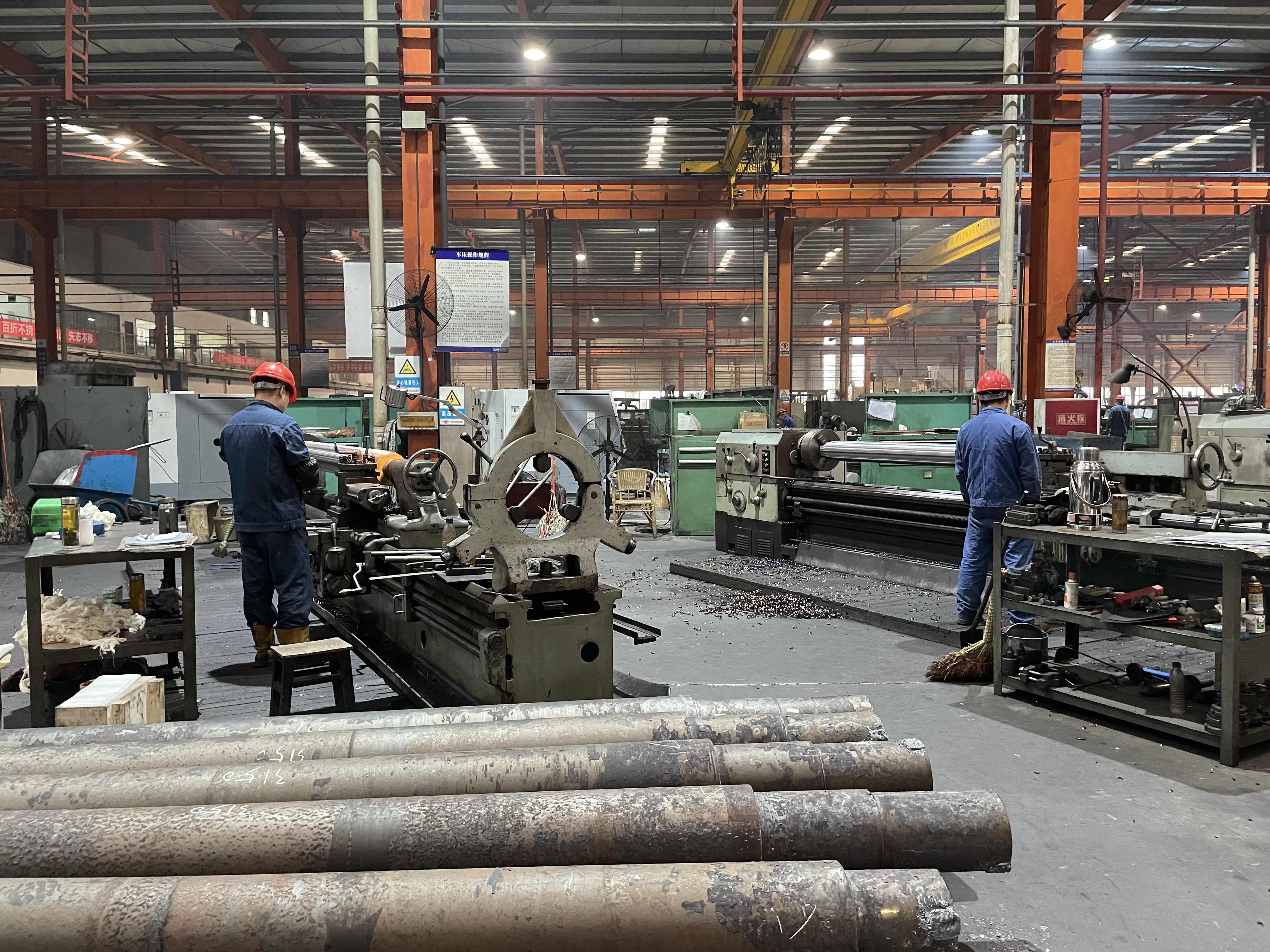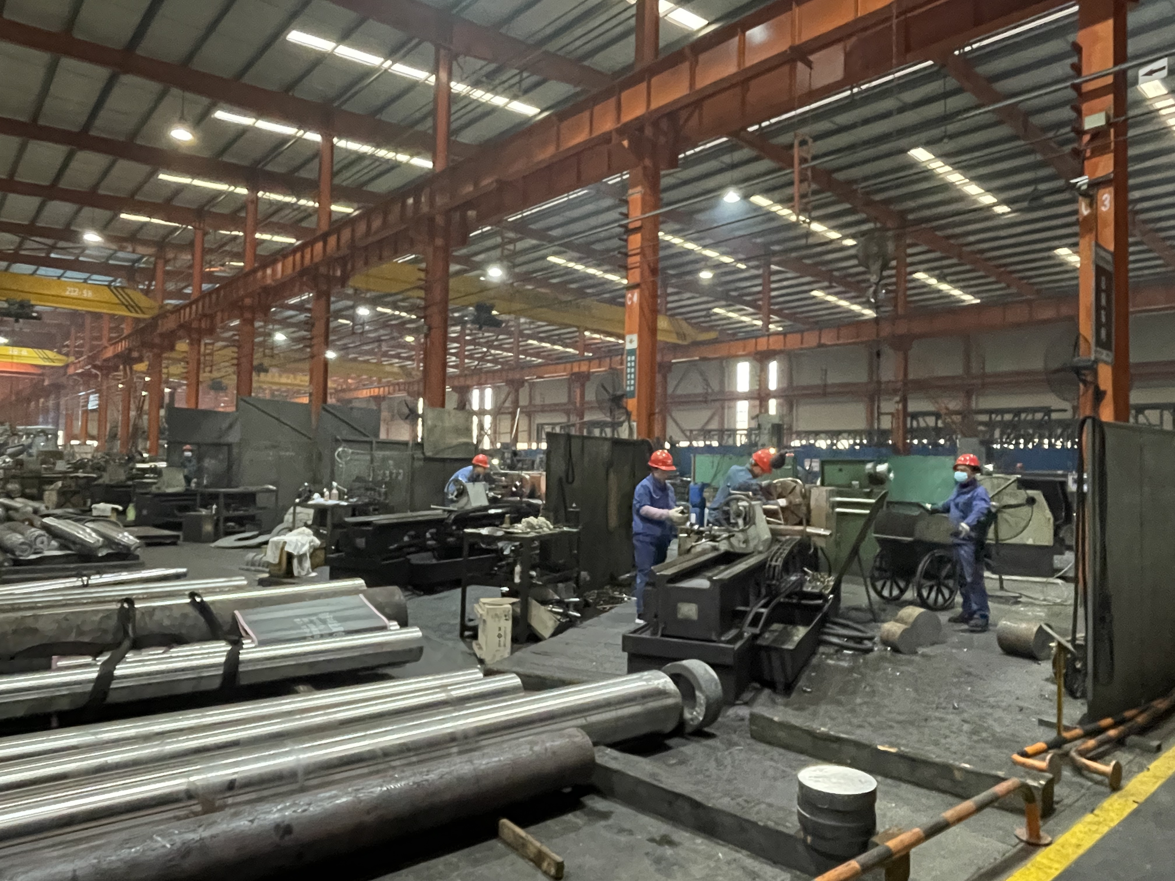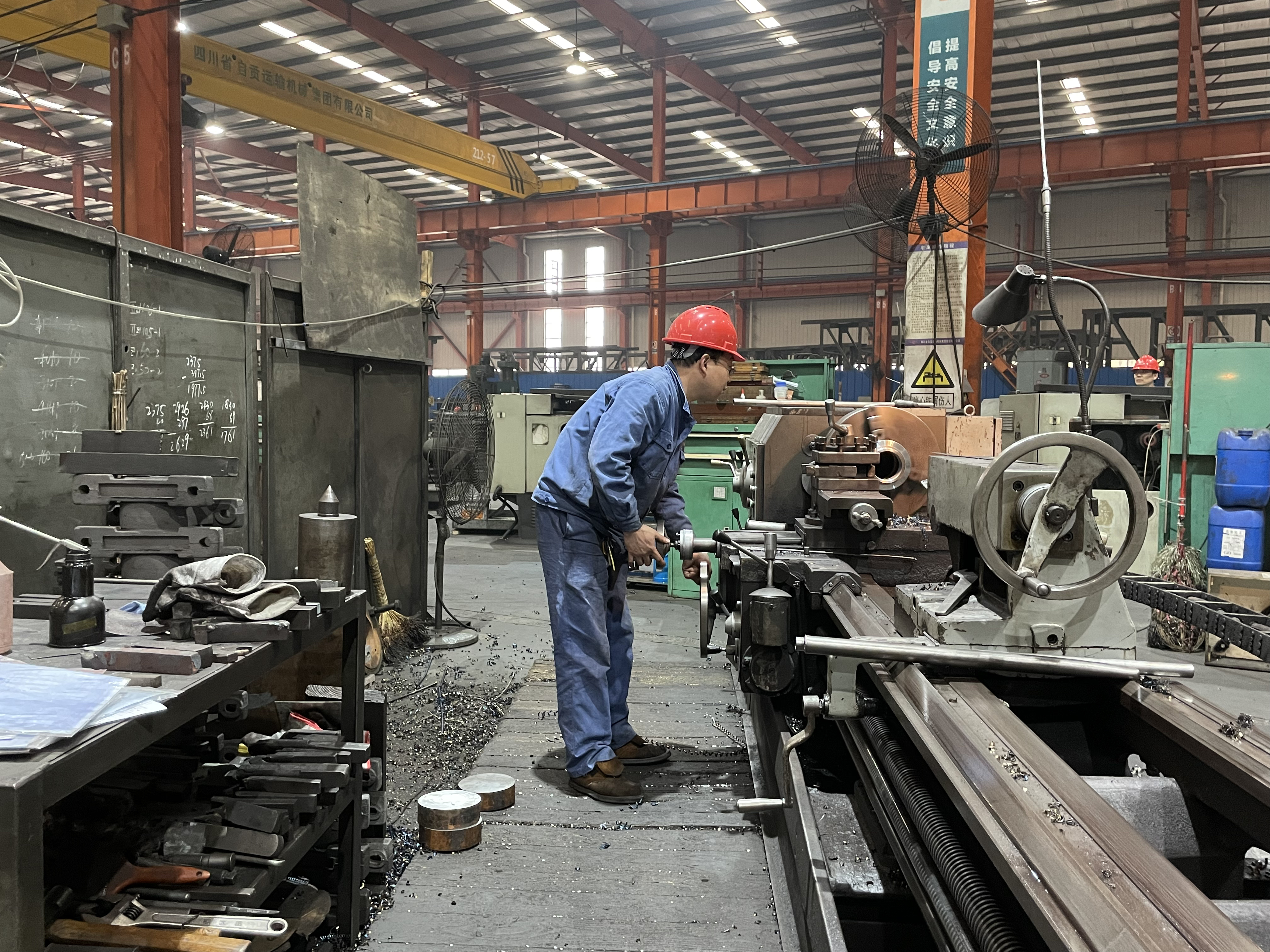 “往左、往左……”2月3日,在自贡运输机械集团股份有限公司的加工车间内,起重设备正移动着一个皮带机滚筒,周围一名工人在指挥着方向。旁边的流水线上,工人们忙碌着滚筒的制作加工,车间内一派热火朝天的景象。