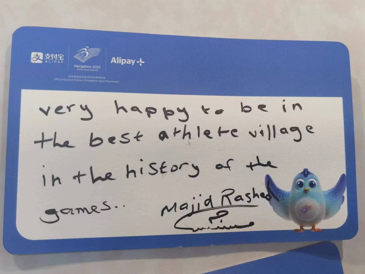 亚残奥委员会主席马吉德·拉什德到支付宝科技无障碍趣味体验区参观并留言