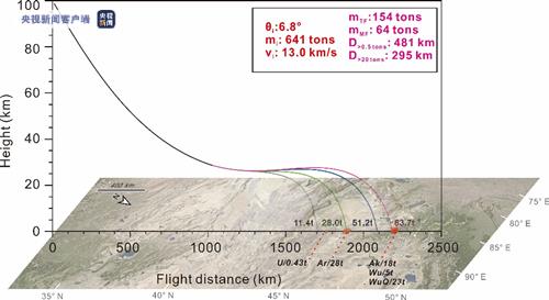 科研团队对阿勒泰陨落带的形成机制进行了数值模拟研究。模拟计算表明,一颗重量280-3440吨的小行星以约12-15千米/秒的速度闯入地球大气层,小行星的入射角很低(约6.5-7.3°),并以“打水漂”的方式进入大气层,飞行方向从东南向西北。模拟结果能够较好地解释阿勒泰铁陨石的分布特征。该工作建立了近地小行星进入地球大气层的动力学轨道演化模型,创新性提出小行星低仰角撞击的“打水漂”式轨道陨落机制,揭示了全球目前已知最长的阿勒泰陨落带的形成之谜,为近地小行星撞击危险走廊的高精度判别构建了新的方法。(总台央视记者 帅俊全)