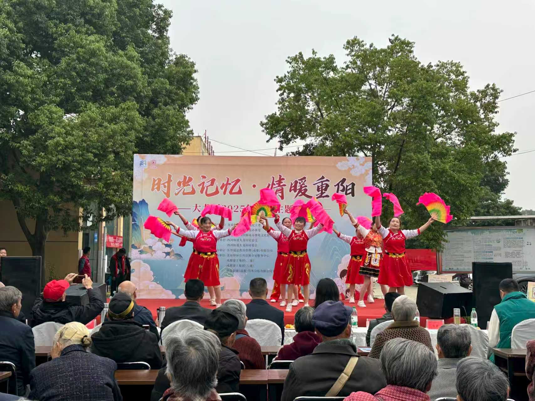 10月29日上午,秋阳和煦,金桂飘香,成都市龙泉驿区西河街道大龙村文体活动广场上洋溢着一派温馨欢乐的节日气氛。由大龙村村民委员会主办的2025年“时光记忆,情暖重阳”重阳联欢会在此举行。村内70岁以上长者、幼儿园的小朋友们、社区志愿者及文艺团队欢聚一堂,共同度过这段难忘的温情时光。