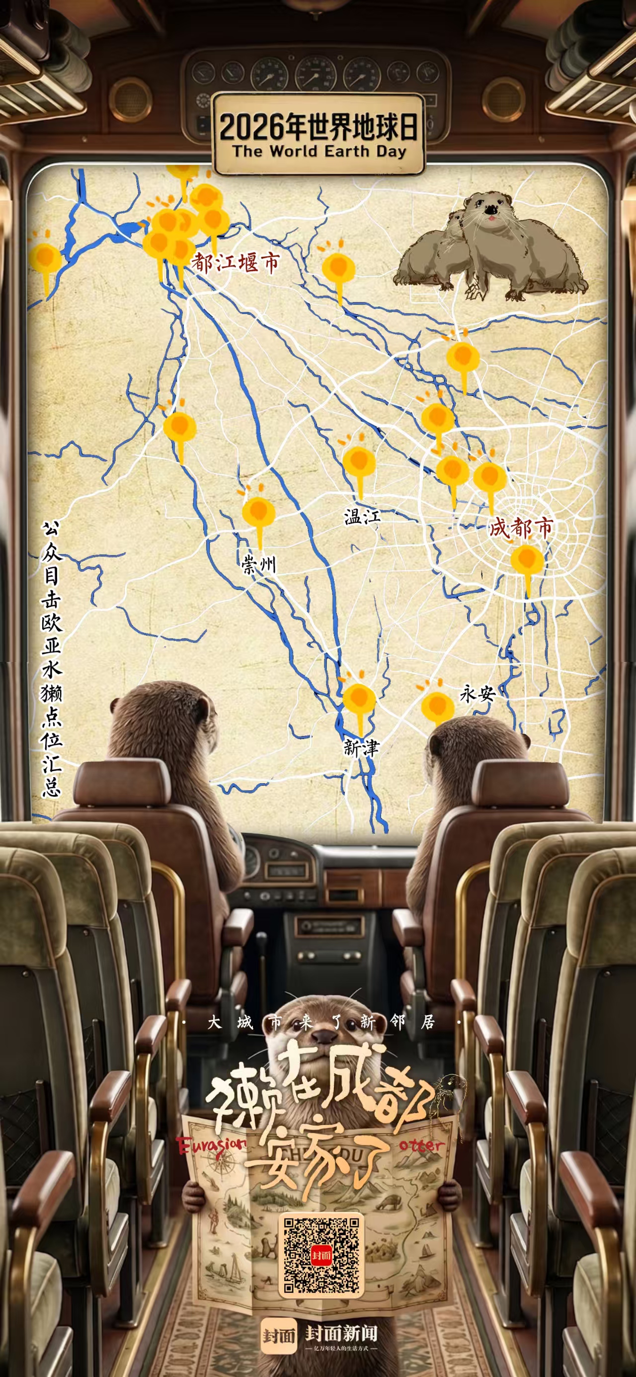 被称作淡水生态系统“健康指标”的欧亚水獭,从哪里来?在成都过得怎么样?2025年开始,封面新闻记者和一群由志愿者、高校教师、科研人员组成的公众科学家团队,利用公众报告、科学监测的方式,对欧亚水獭在成都岷江、沱江流域的分布、活动规律以及在城市河流中的栖息地利用情况进行研究,试图重新思考城市河流、城中自然,以及人与野生动物的关系。