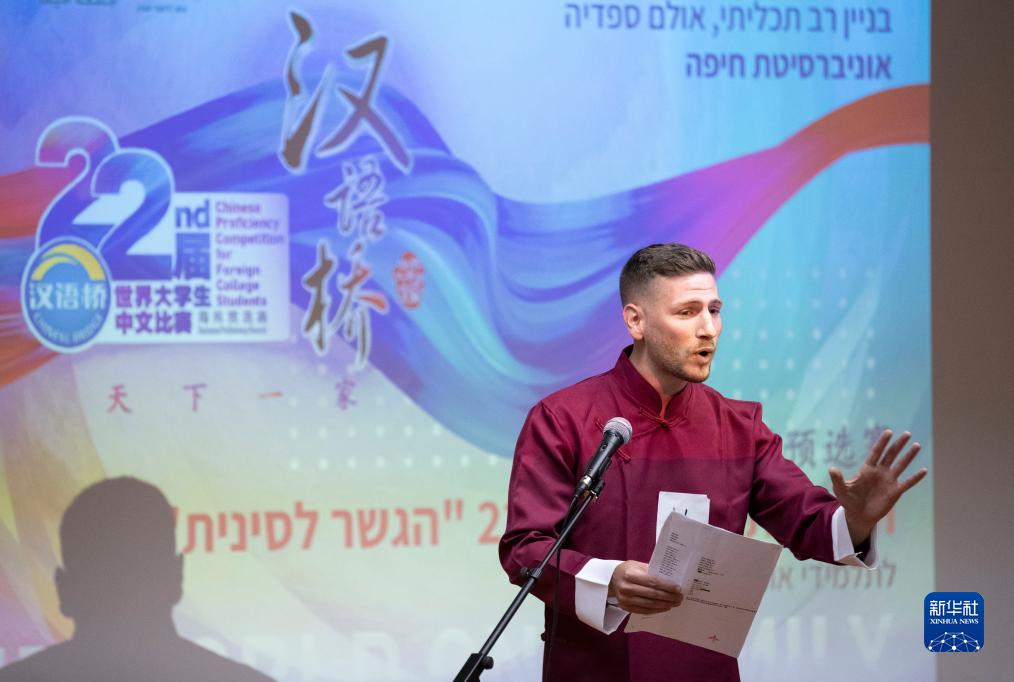 6月8日,在以色列海法,对外经贸大学以色列分校学生阿米特·波特曼参加“汉语桥”世界大学生中文比赛。新华社记者 陈君清 摄
