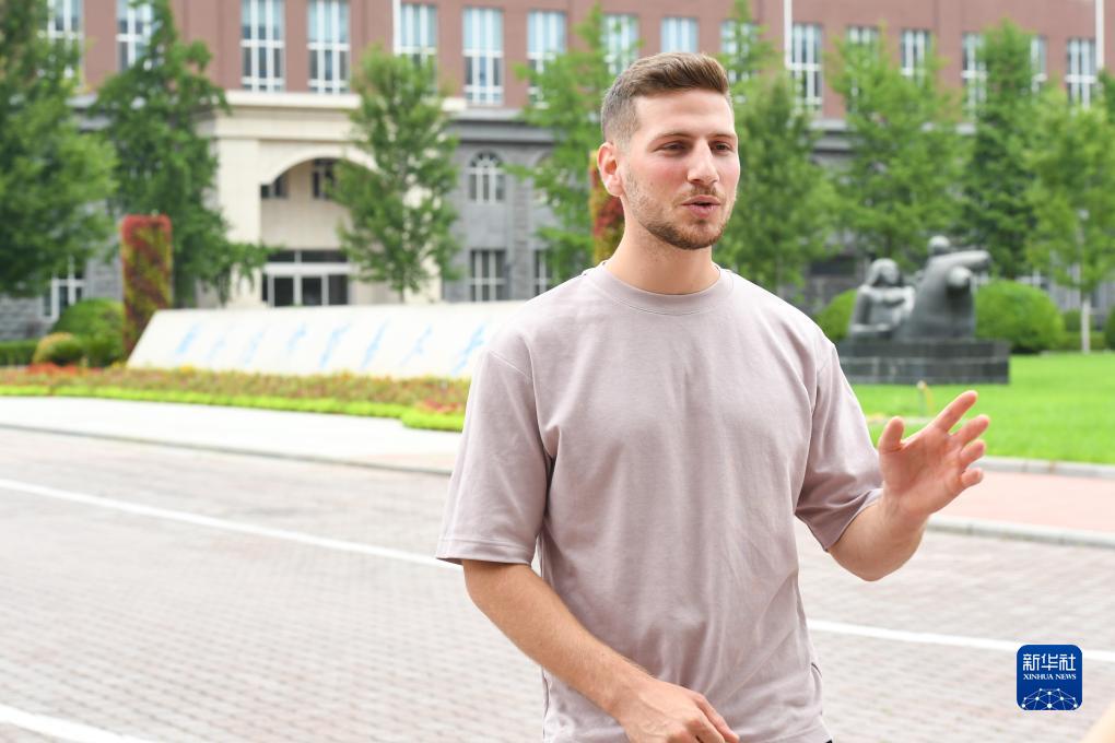8月7日,对外经贸大学以色列分校学生阿米特·波特曼在位于北京的对外经济贸易大学本部接受采访。新华社记者 鞠焕宗 摄