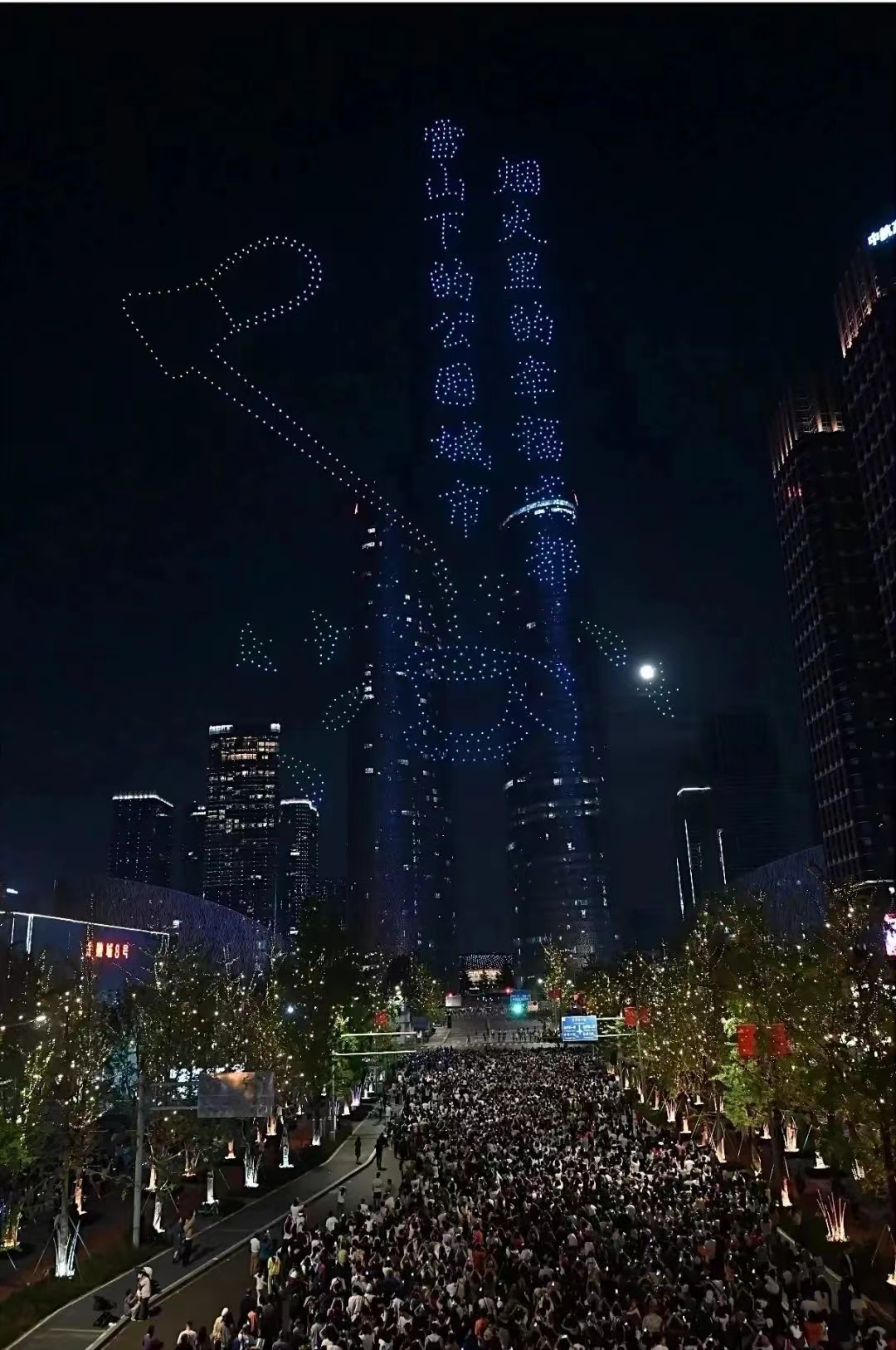中秋期间成都交子塔无人机表演
