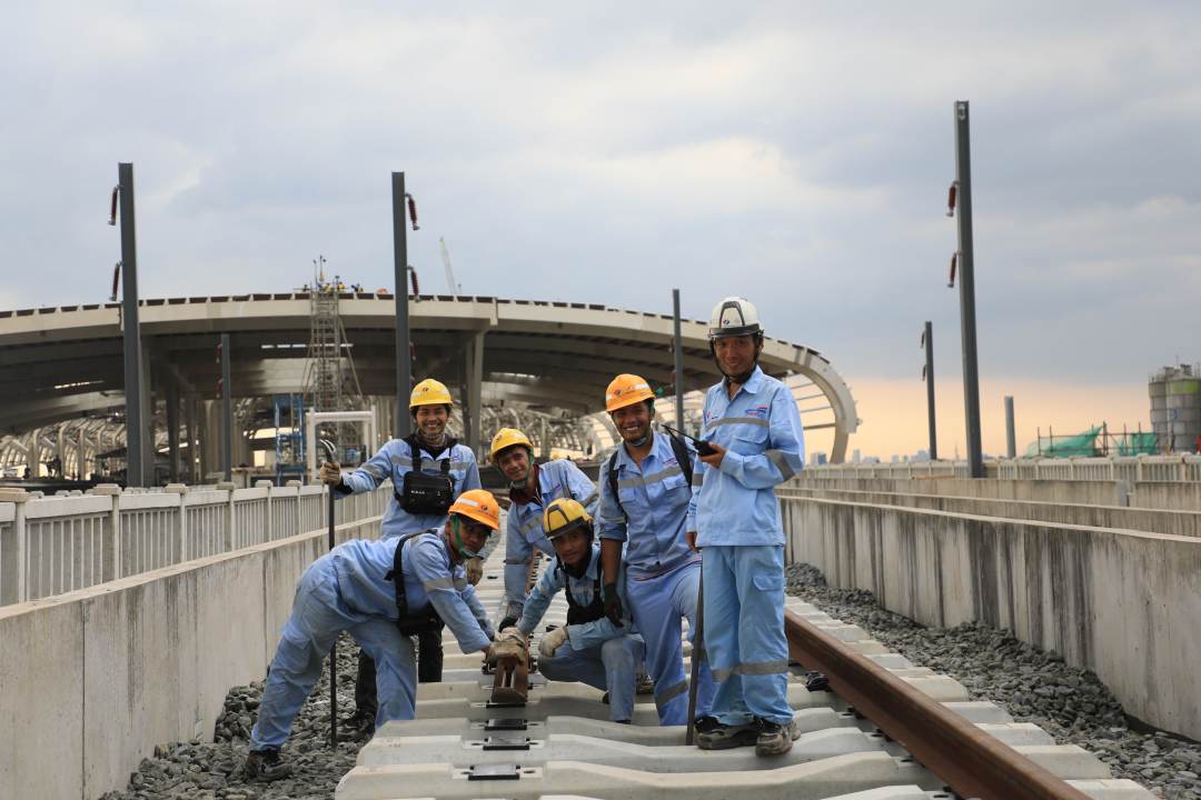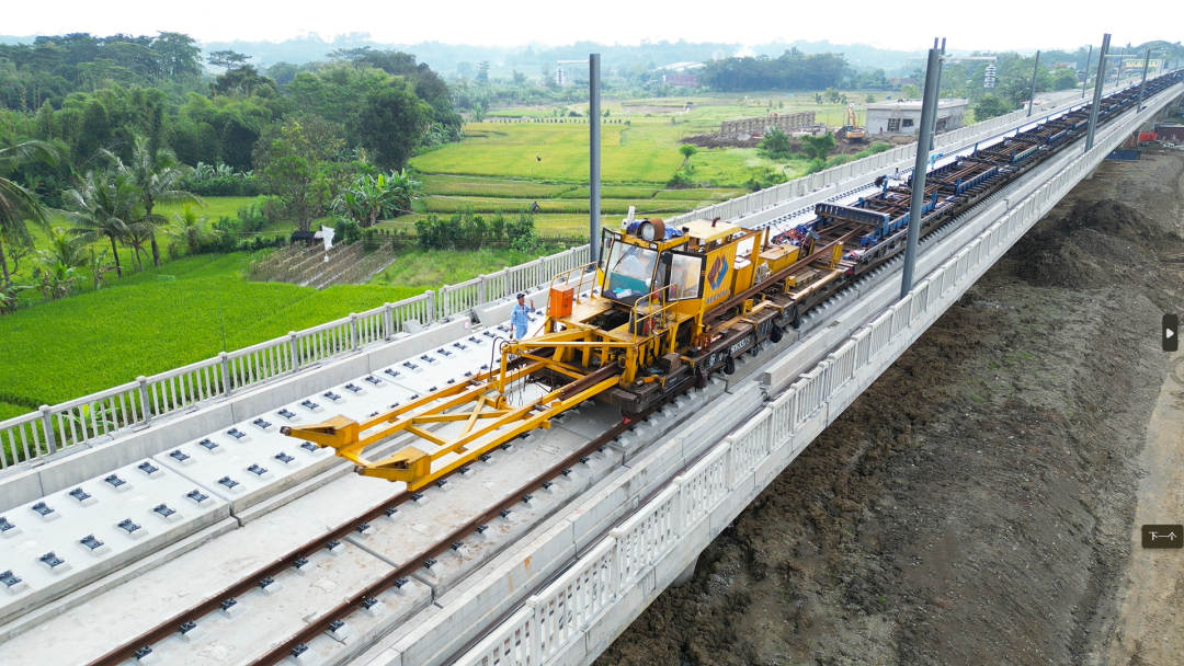 自2022年4月20日启动铺轨以来,面对印尼当地高温降雨不良气候条件、连续30‰长大坡道地段运输及铺轨等施工难点,铺轨单位科学优化施工组织,动态调整施工方案,加强现场资源配置,中印尼双方铁路技术人员紧密协作,连续奋战,确保了雅万高铁铺轨高质量完成。在铺轨作业过程中,中方技术团队主动向印尼员工传授技术,积极为印尼方培养高铁建设人才。