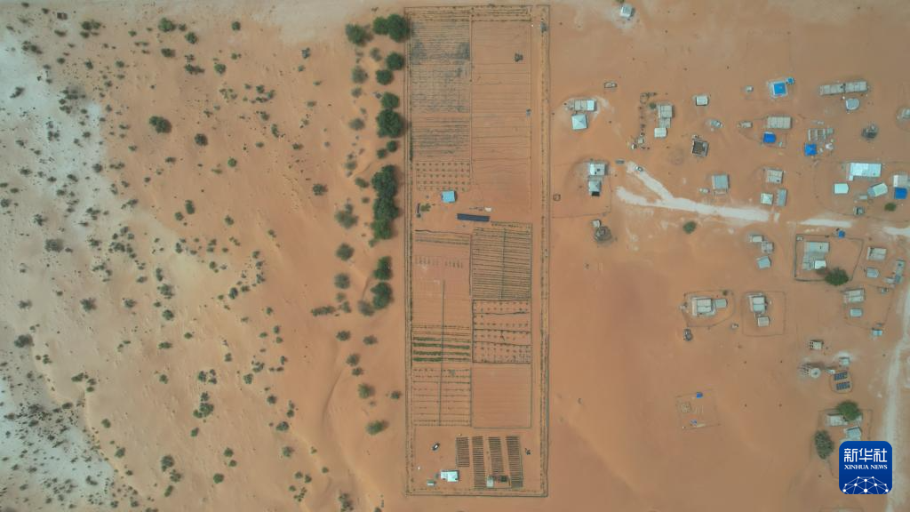 这是5月22日拍摄的位于毛里塔尼亚西部特拉扎区比尔·巴尔卡村的中非绿色技术公园(无人机照片)。新华社记者 司源 摄