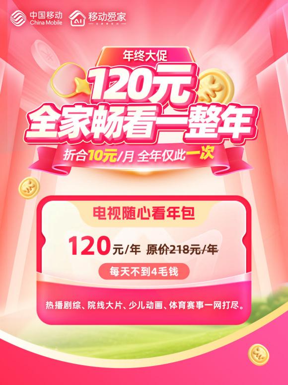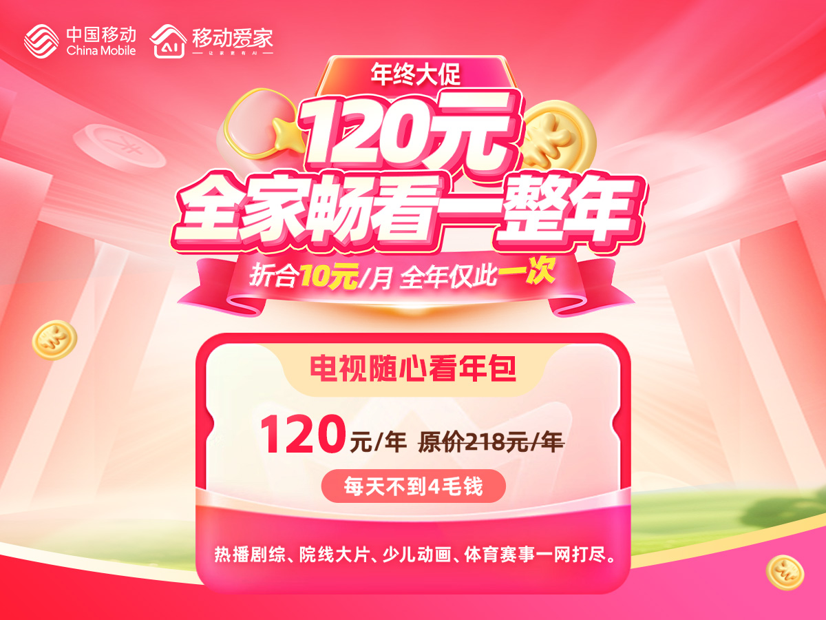 重磅安利“移动电视随心看年包”!年终大促直接杀疯 ——120 元承包一整年!每月才10块钱,每天不到4毛钱!