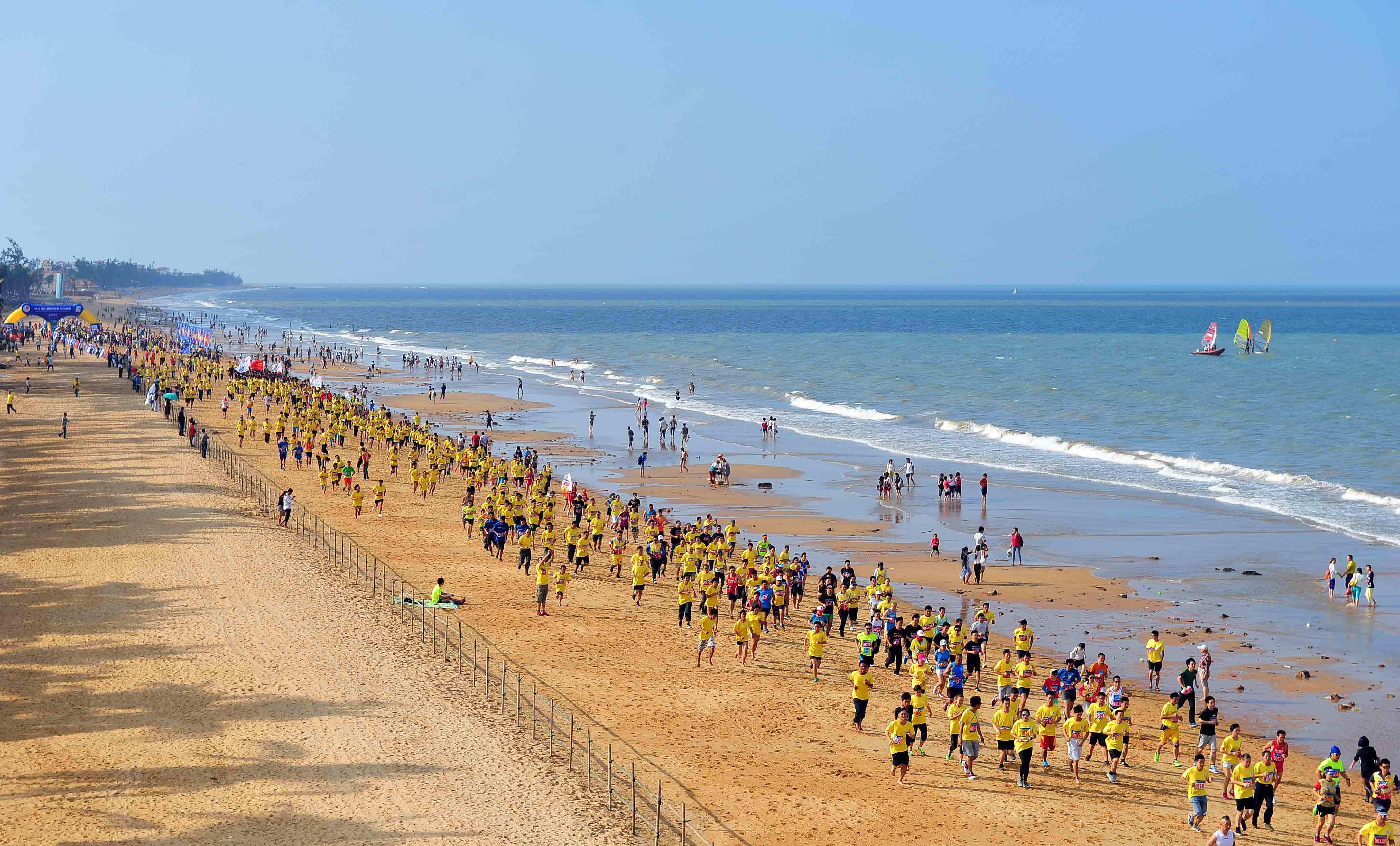 图为2014海口国际沙滩马拉松赛现场。新华社记者 郭程 摄看点六:奥运项目“换个打开方式”