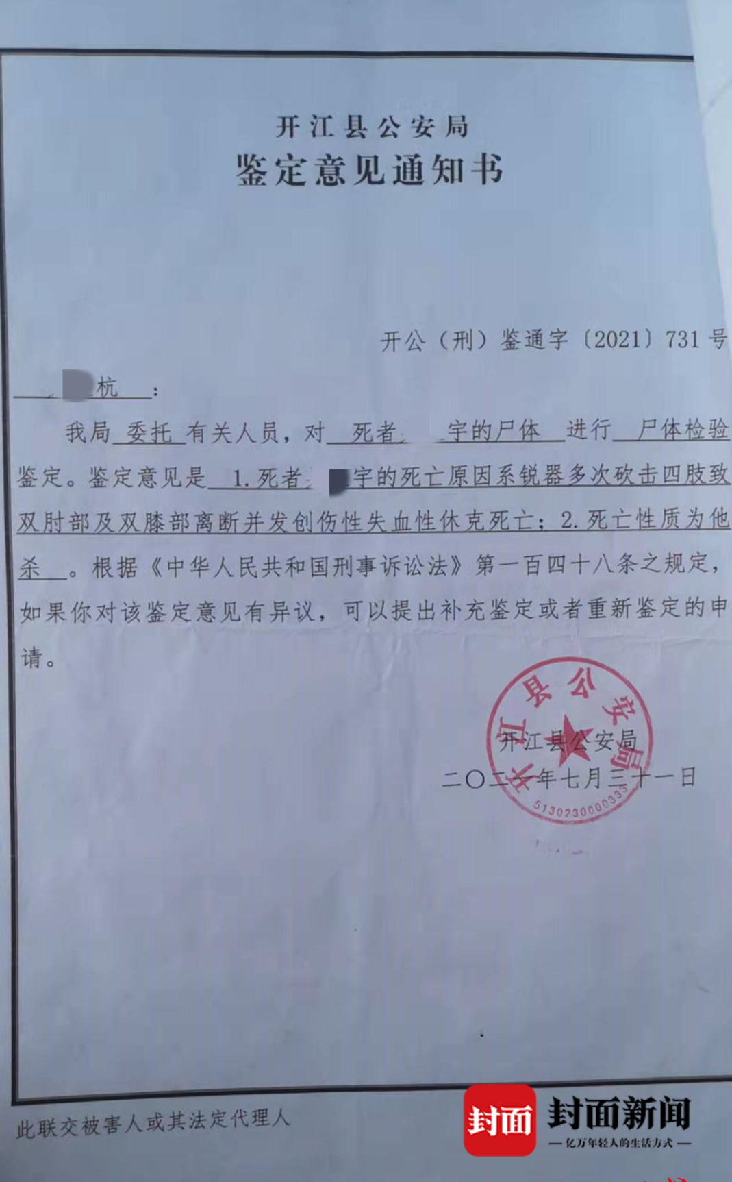 1月6日,封面新闻记者从四川省达州市中级人民法院获悉,开江县公公杀死儿媳案有了最新进展——四川省高级人民法院已出具裁决书,最终裁定“驳回上诉,维持原判”。2022年1月7日,该案由达州市中级人民法院在开江县人民法院公开审理并宣判,一审中,被告人龙某亮被判死刑,剥夺政治权利终身。
