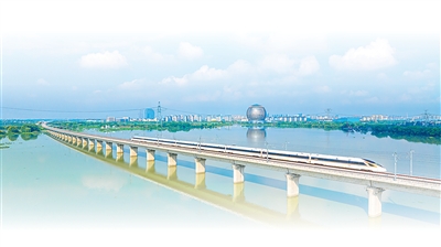 沪苏湖高速铁路上的列车飞驰而过。 屠旭东摄(影像中国)