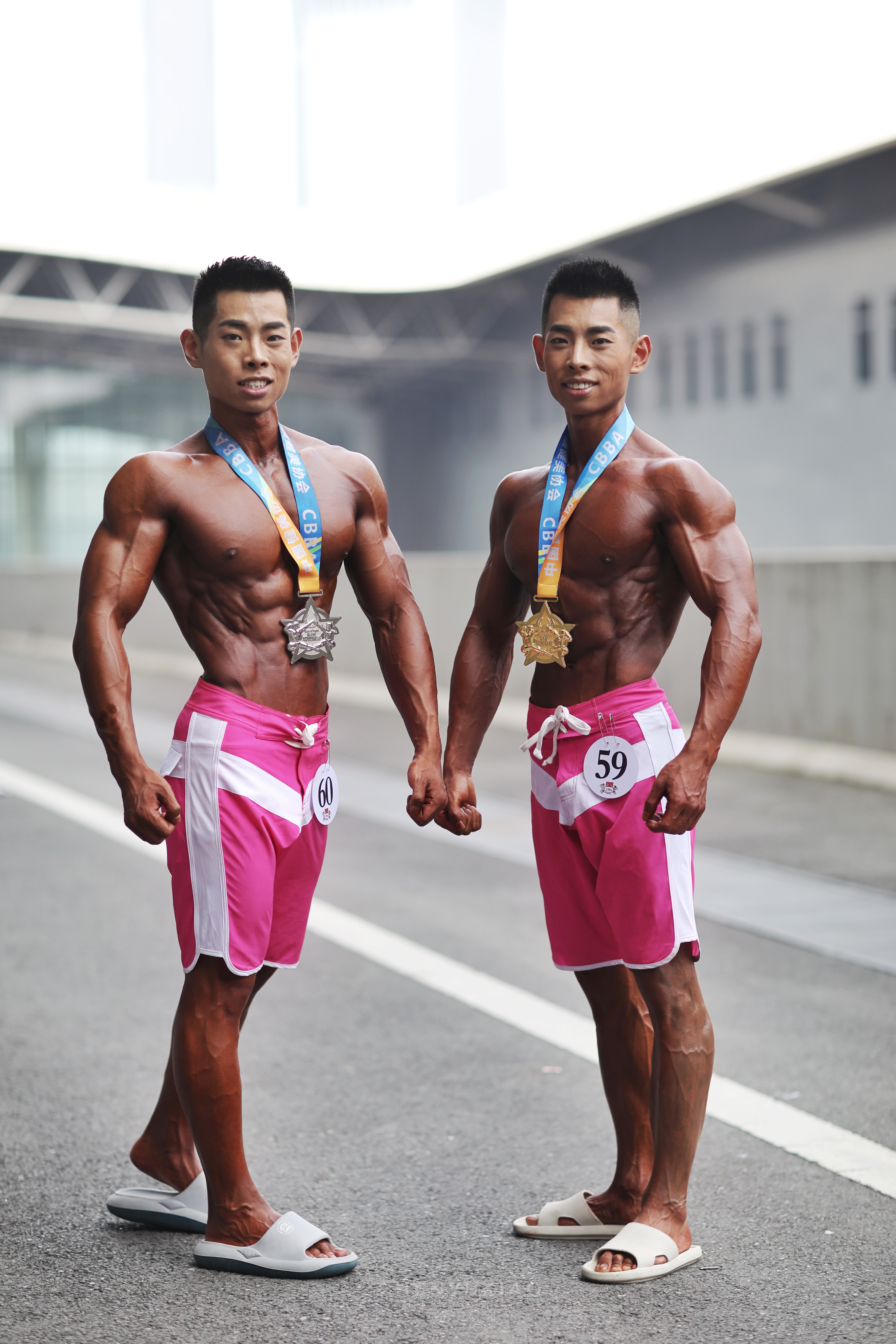 5月24日,成都,化文鹏和化文程两兄弟夺得中国健身健美精英职业联赛男子A组别冠亚军。陈羽啸摄