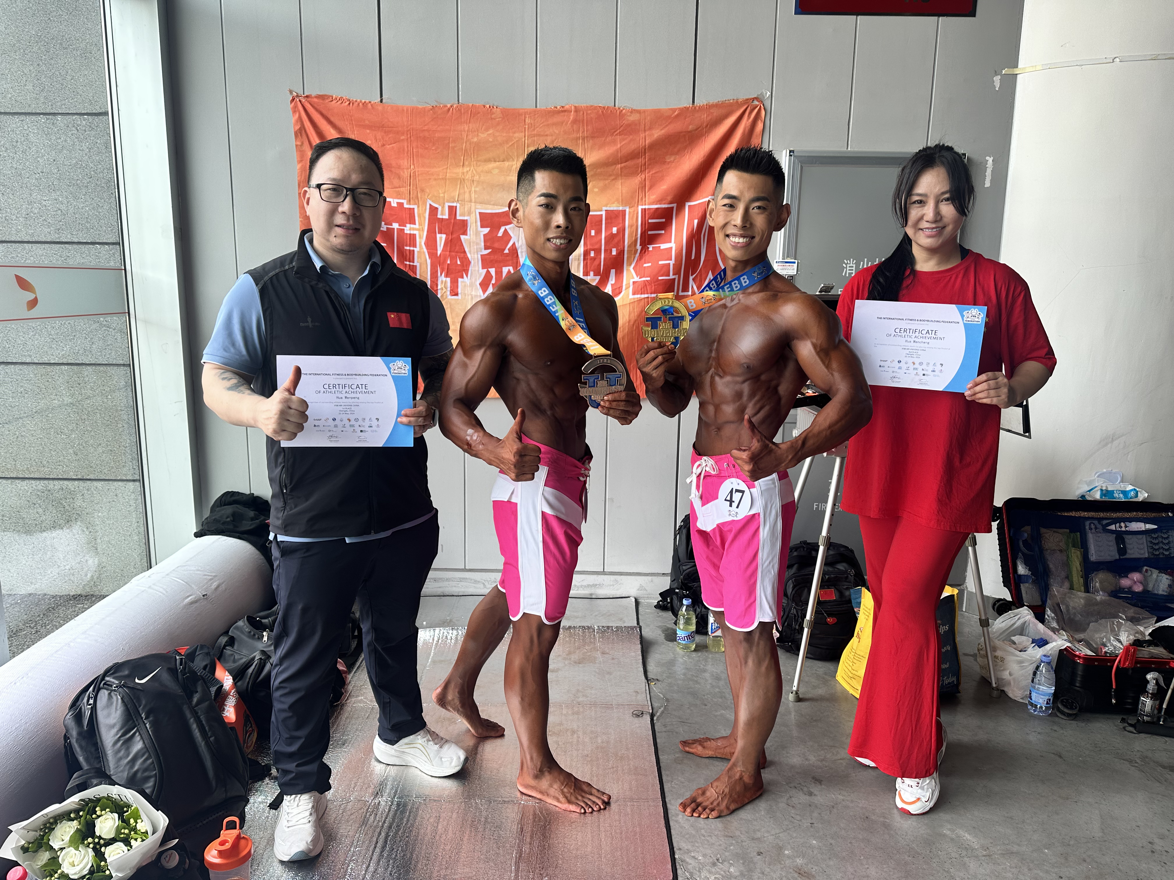 5月23日,成都,化文鹏和化文程两兄弟夺得国际健美联合会“宇宙先生资格赛”男子A组冠军和季军。陈羽啸摄