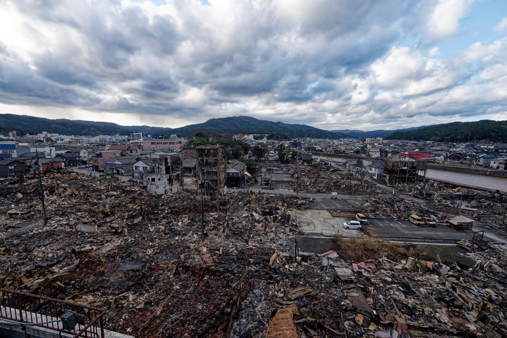 日本石川县轮岛市“轮岛早市”被地震引发的大火烧成废墟(1月4日摄)。新华社记者张笑宇摄