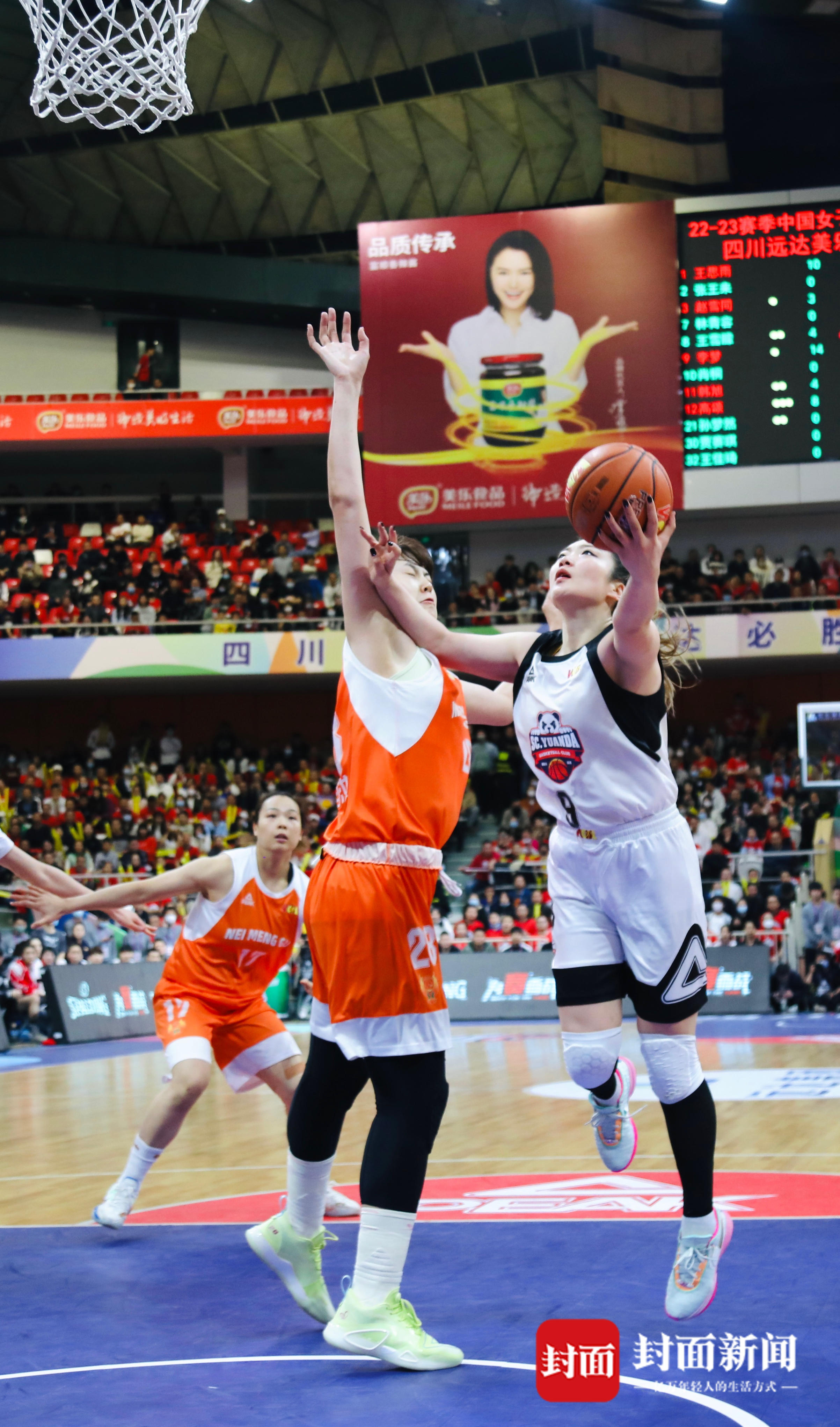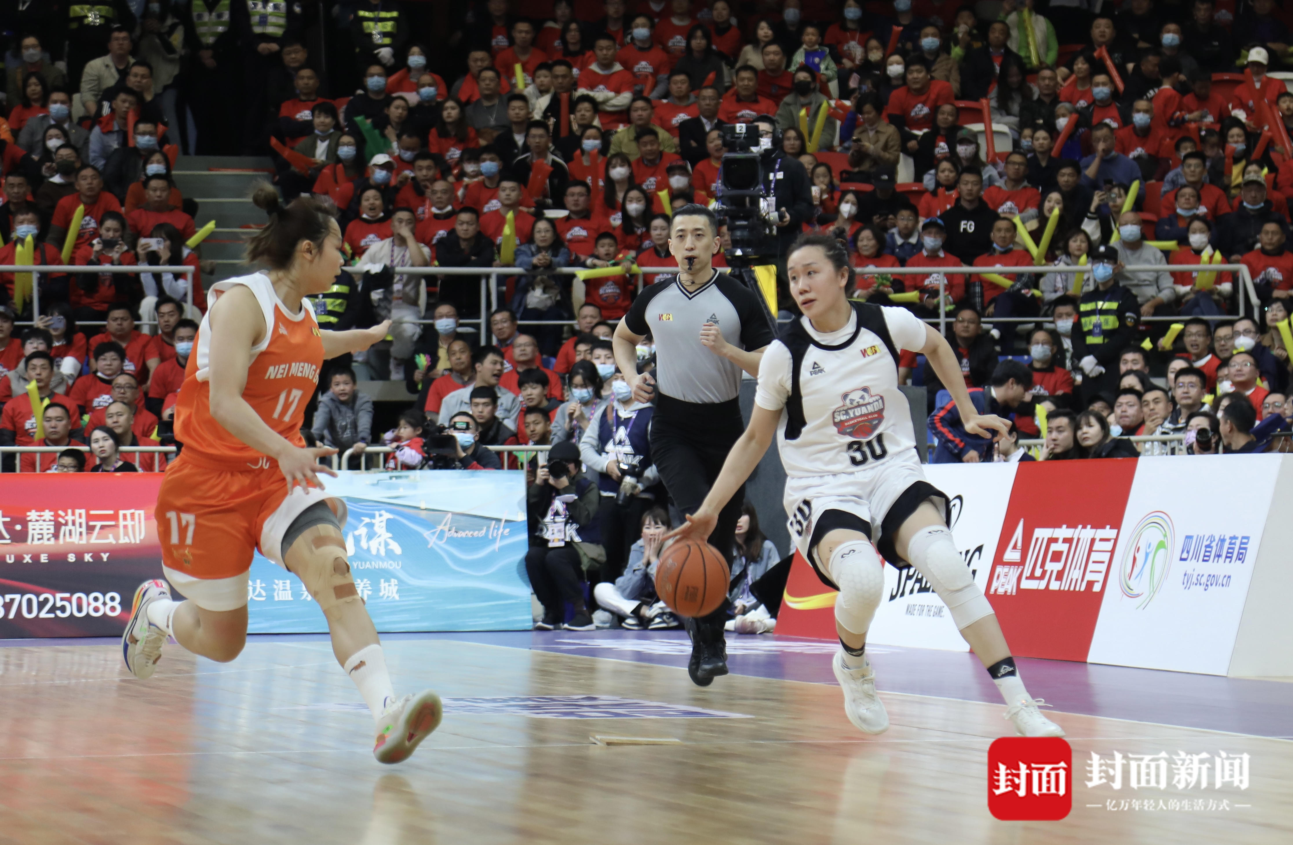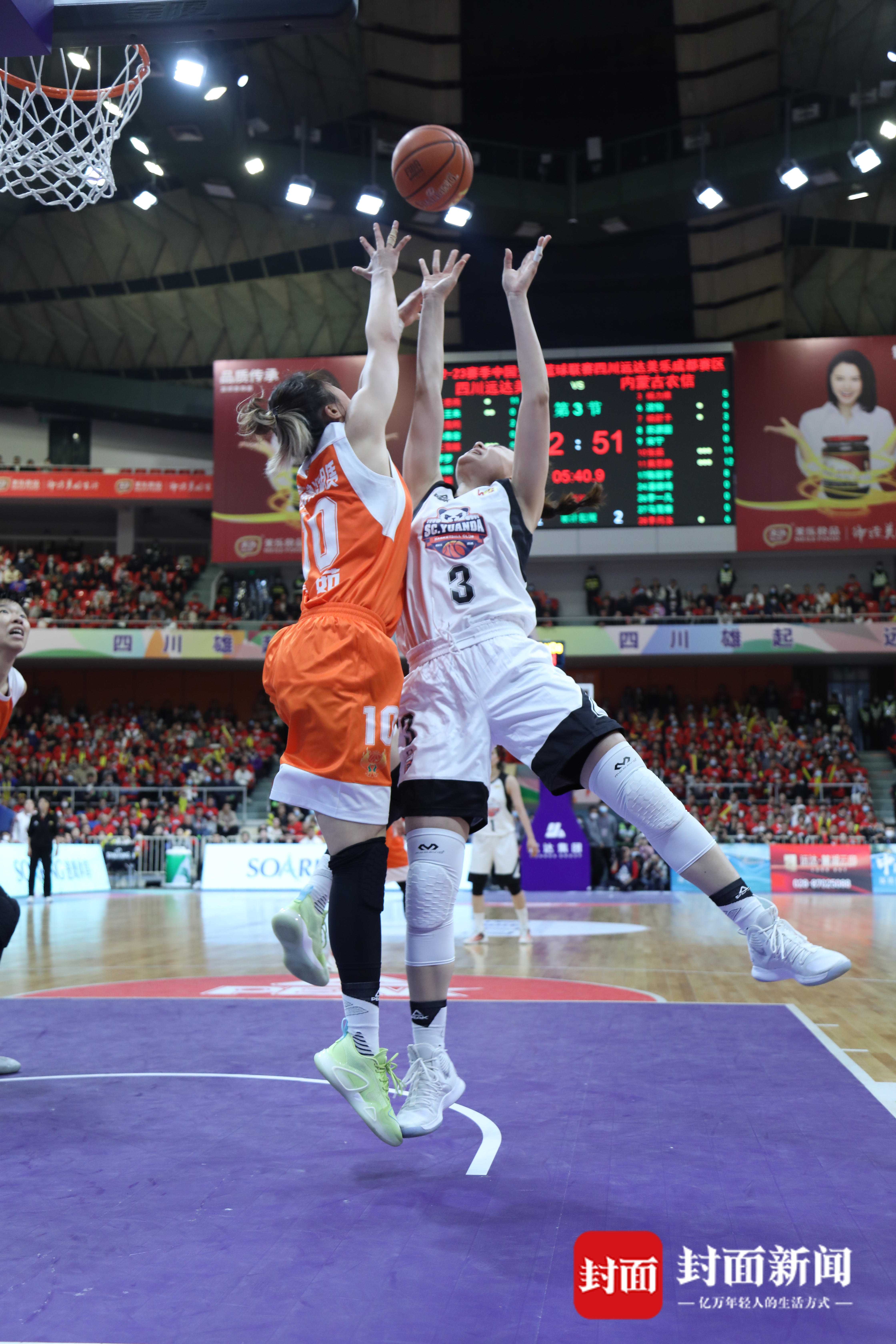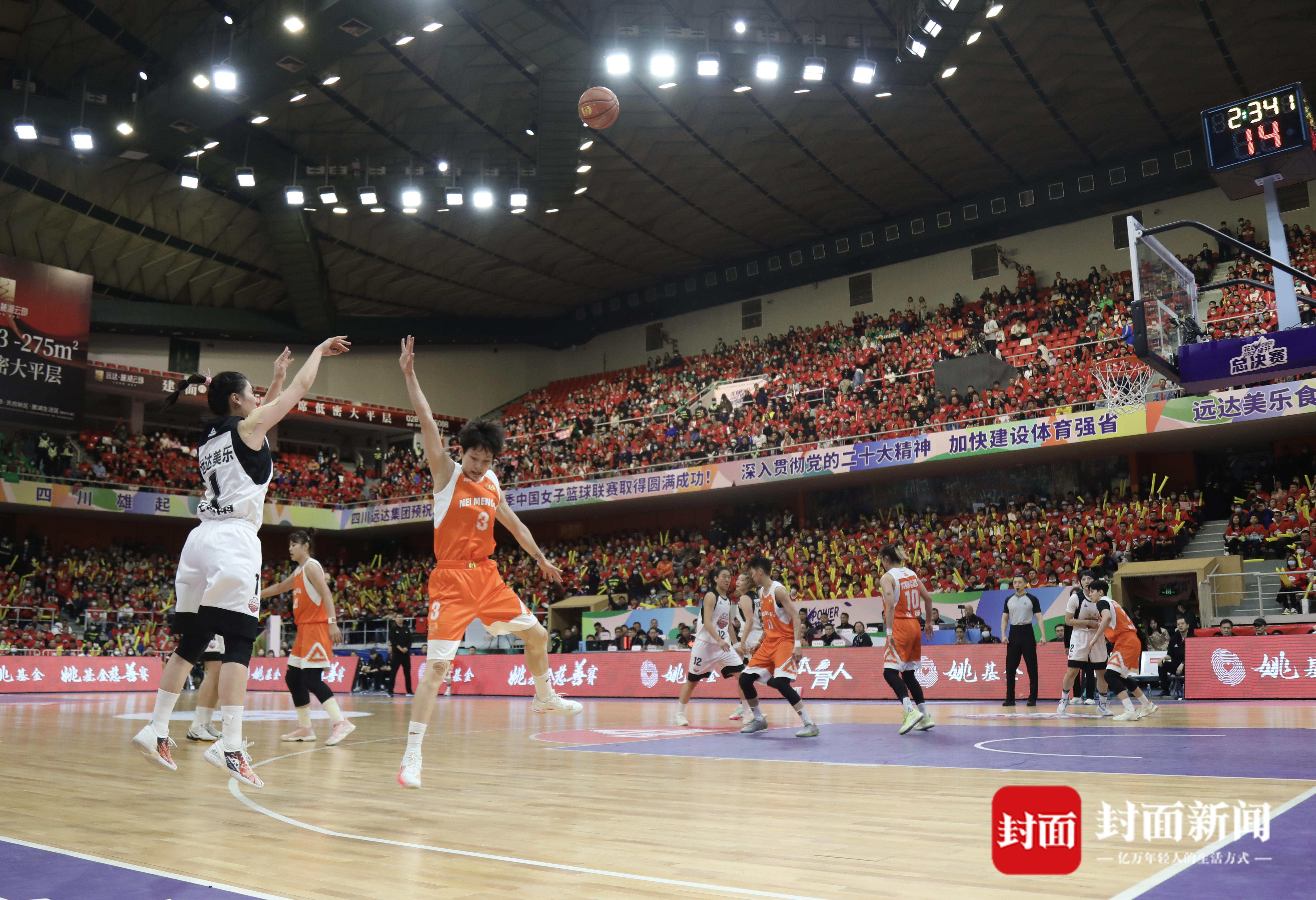 今天的总决赛第三场,四川省体育馆内一片红色的海洋,能容纳近万名观众的球场座无虚席,在阵阵“雄起”声中,四川女篮与内蒙古的巅峰对决正式开启。本场比赛也堪称国家队内战,双方各有多名国家队球员。四川女篮派出了李梦、王思雨、韩旭、王雪朦、高颂五名国手首发,内蒙古则派出了杨力维、沈怡、张茹、黄思静、李月汝国手为主的首发。