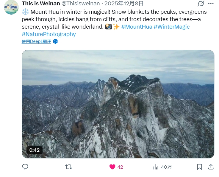 用国际视角讲好本土故事,短视频成为渭南文化出海的高效载体。在第七届 “一带一路”百国印记短视频大赛中,渭南选送的《中亚“农艺侠客”渭南秘籍探寻记》《村里来了个洋亲戚 ——国际观察员“Tan”大荔》分获大奖,这种“国际观察员+沉浸式体验”的叙事模式,让文化渭南通过真实可感的场景与海外受众形成共鸣。此外,渭南精准把握国际传播规律,构建多维度传播网络,打造“世界你好,我是渭南”全球多语种对外传播平台和“This is Weinan”海外社交账号,通过 Facebook、YouTube、X等平台,持续输出文化渭南精品内容。线下层面,渭南通过参与国际文化展会、推动文旅项目国际化,将华山、司马迁祠等核心文旅资源纳入全球旅游版图。