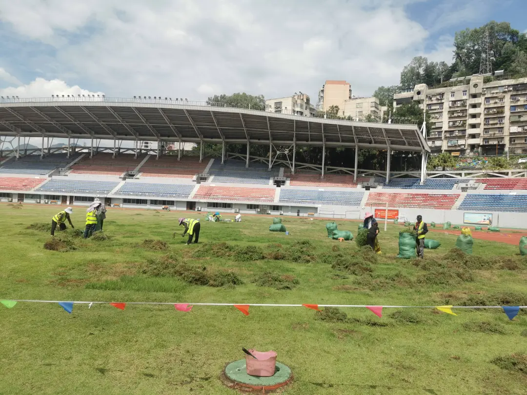 本次“川超”比赛场地之一攀枝花市体育场正在加紧施工