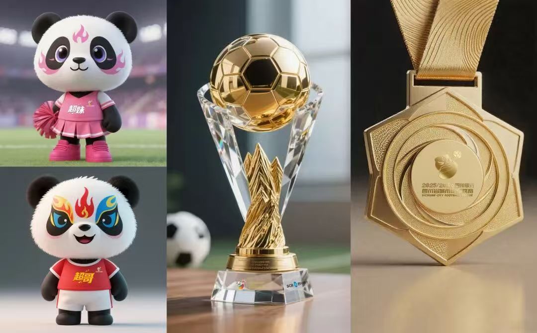 “川超”吉祥物、奖杯、奖牌 图据四川省城市足球联赛