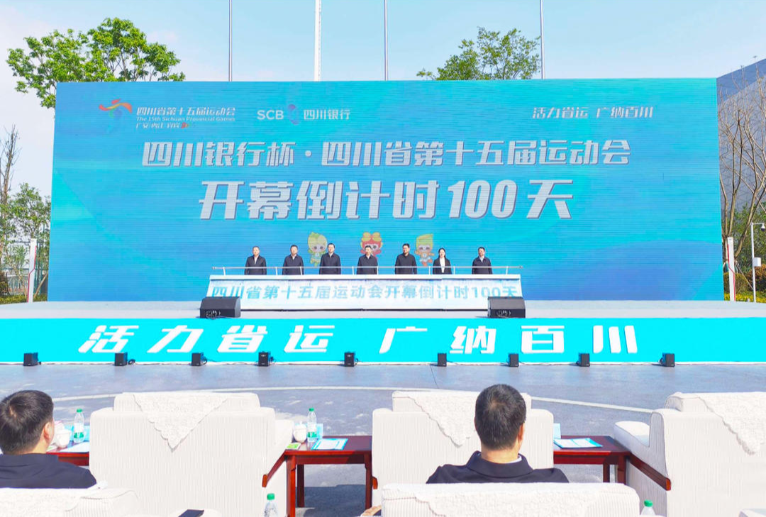 4月8日上午,四川省第十五届运动会开幕倒计时100天启动仪式在广安市奥体中心五环广场举行。