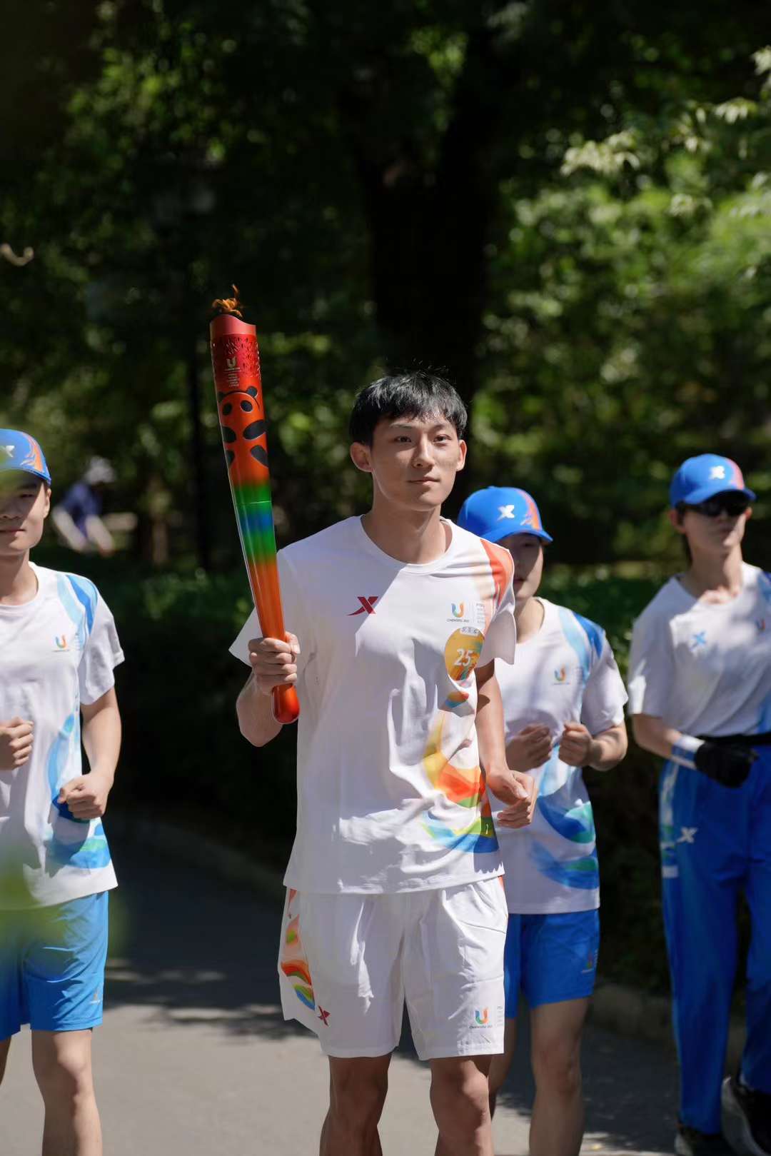 谢智宇作为火炬手参加成都大运会火炬传递。受访者供图