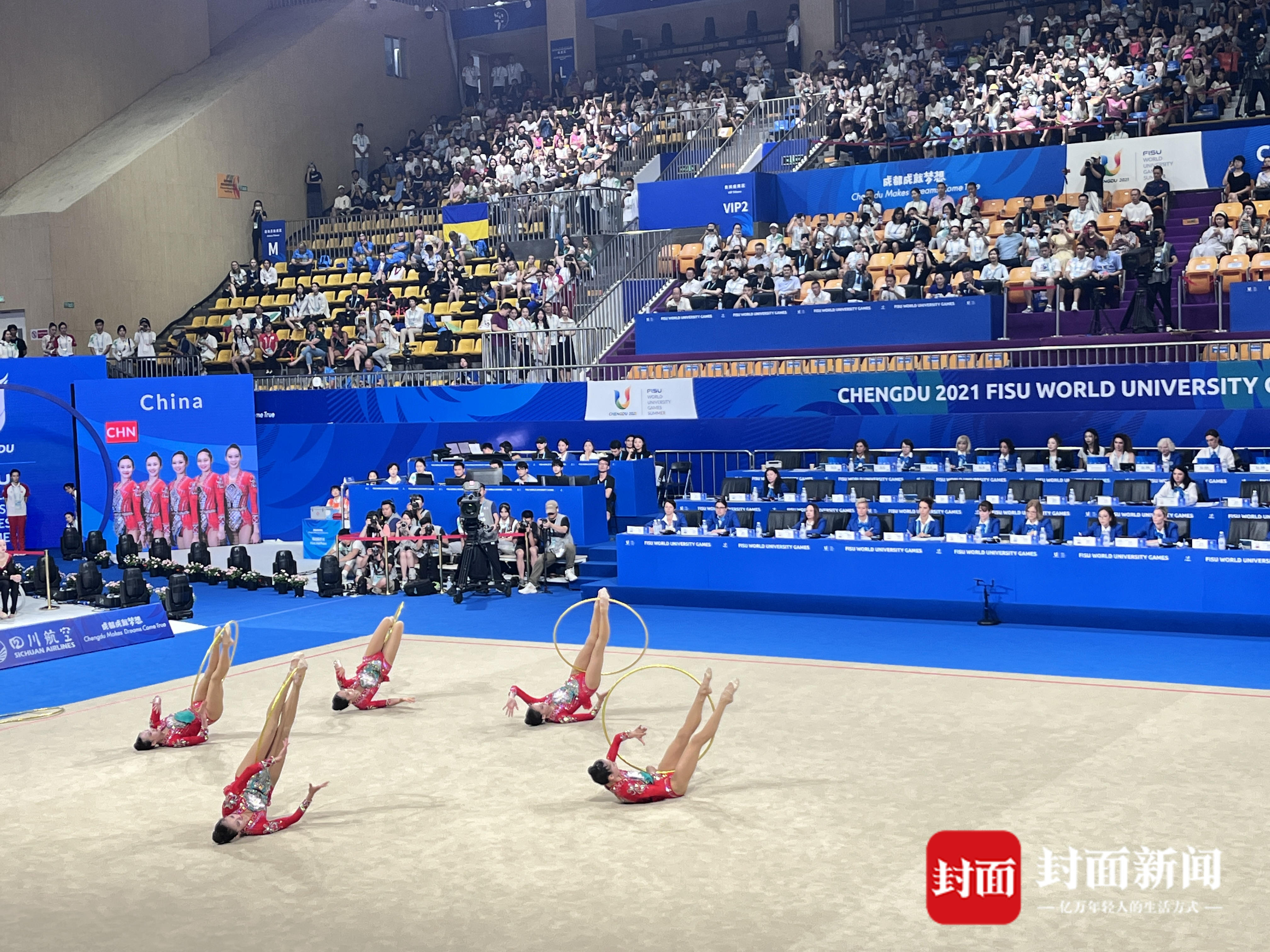 7月31日,成都大运会艺术体操集体器械决赛(5圈)在成都体育学院综合馆举行,中国队以30.900高分夺得金牌,这也是继艺术体操集体全能后中国队获得的第二枚金牌。