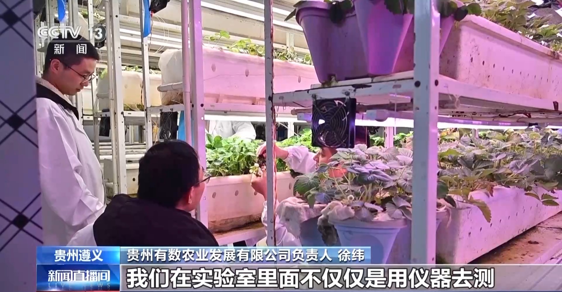 贵州有数农业发展有限公司负责人 徐纬:草莓生长有五大密码,温、湿、光、肥、气,这五大密码一定要一组一组去试,光不对了,气再对也不合适,二氧化碳到底补多少。我们在实验室里面不仅仅是用仪器去测,我们人也站在里面。