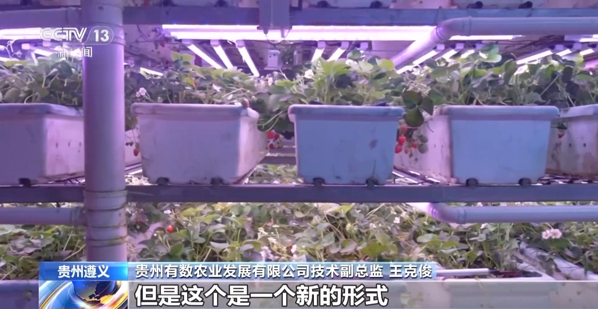 贵州有数农业发展有限公司负责人 徐纬:这样的草莓种出来产量更高,然后通过温度、湿度控制,它不会生病。我这边一年能产出120万斤草莓,堪比地里面400亩土地的产量。