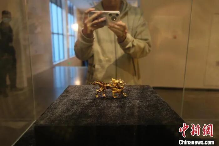 2024年12月1日,“投龙——从山川祭祀到洞天福地”特展在浙江杭州启幕。图为观众在杭州西湖出水的北宋金龙前驻足拍照。曹丹 摄