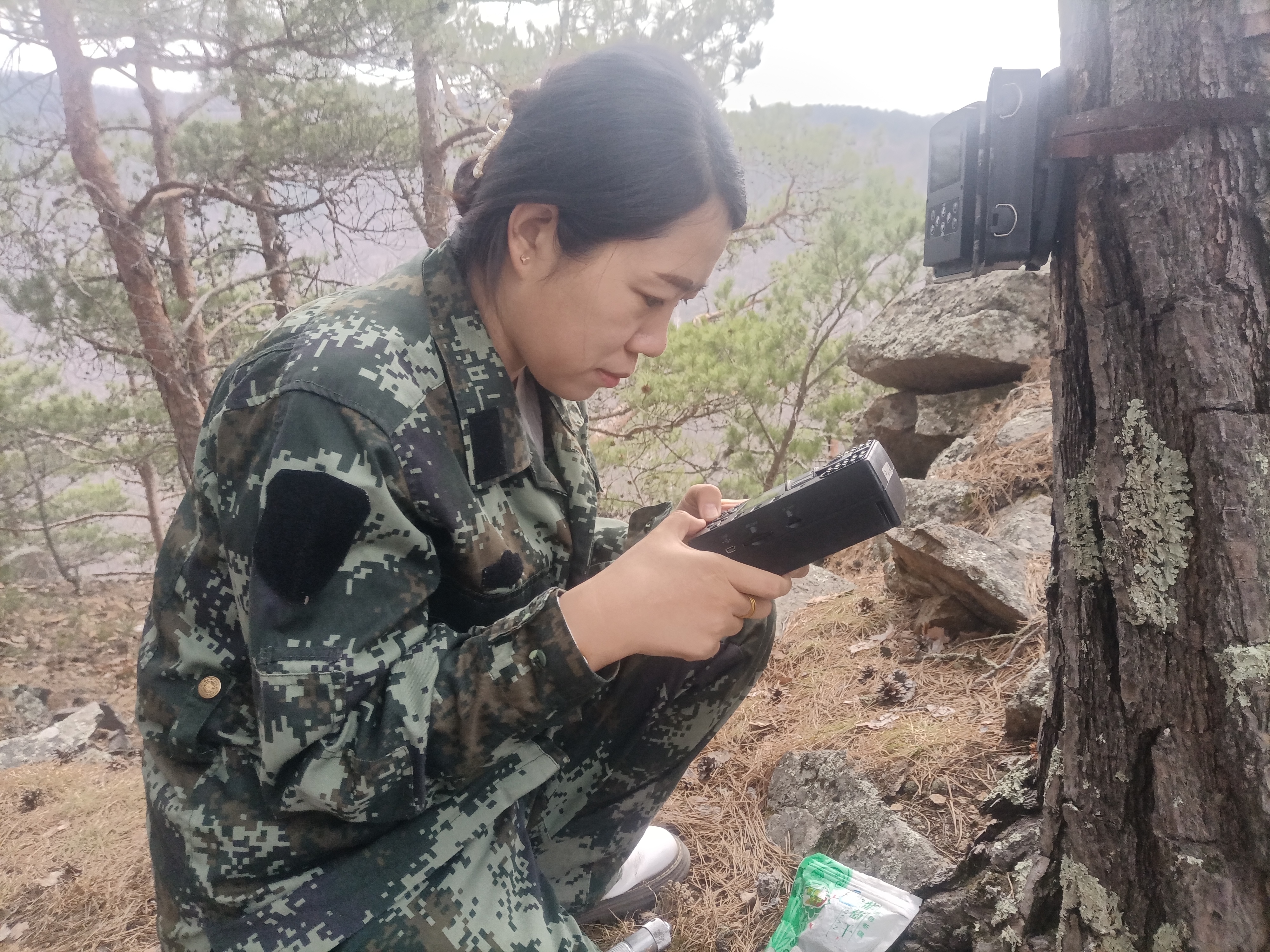 上山巡护时,为保证安全,至少需要三名巡护员一起工作。“巡护员早上七点左右出发,带着各种设备、水和食品,午饭就在山里简单吃一口,下午三四点才能下山。”东宁市林业和草原局朝阳沟林场副场长李刚介绍,“女巡护员在数据记录和设备维护方面工作细致,能和男巡护员实现互补。”