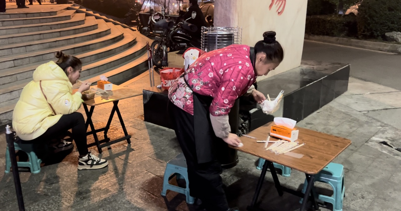 夜幕降临,杨长兵的炒粉摊人气渐旺,很多人慕名而来,为了见这个断臂爸爸一面。