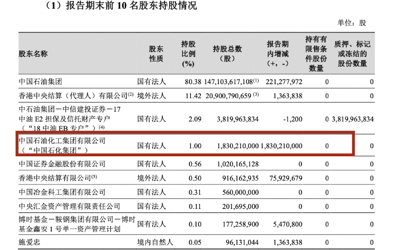 据悉,中石化去年11月发布公告称,为深化中国石化集团与中国石油集团的战略合作,优化公司股权结构,中国石化集团与中国石油集团签署了无偿划转协议,由国务院国资委批准通过国有股份无偿划转方式将中国石化集团持有的中石化上市公司21.37亿A股股份划转给中国石油集团。同年9月,中石油无偿划转18.3亿股票给中石化集团,占总股本的1%。