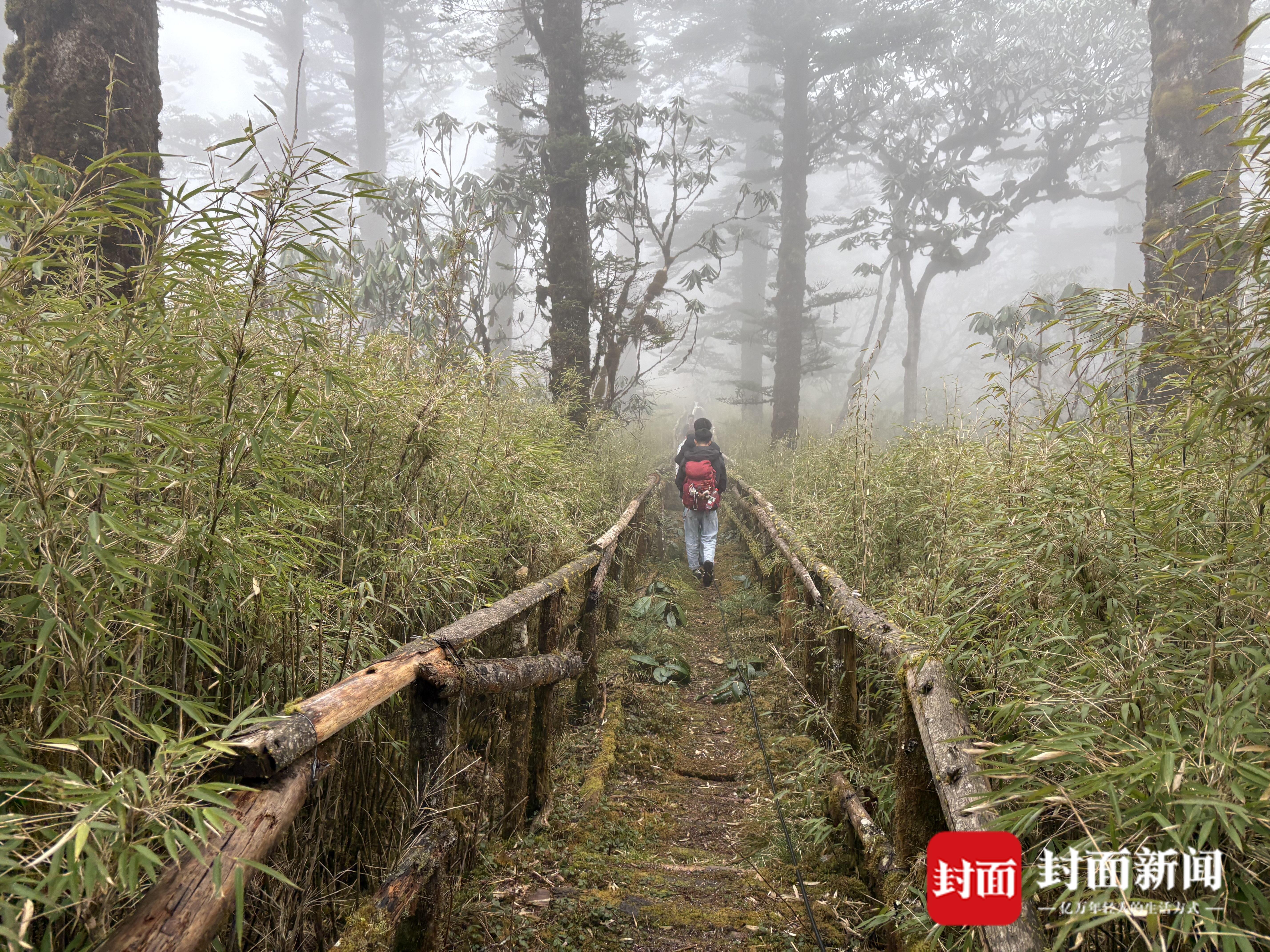 启动仪式后,多位户外爱好者体验了休闲入门线。有爱好者在沿途发现了大熊猫活动的轨迹,也有爱好者在穿越云雾环绕的原始森林时点赞:这是四川人的哀牢山。