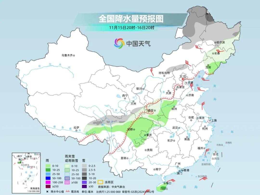 本轮寒潮过程也将带来雨雪天气。总体来说,由于水汽条件一般,雨雪范围不大、强度不强,主要集中在东北、西北地区东南部、西南地区东部到黄淮西部、江汉一带。