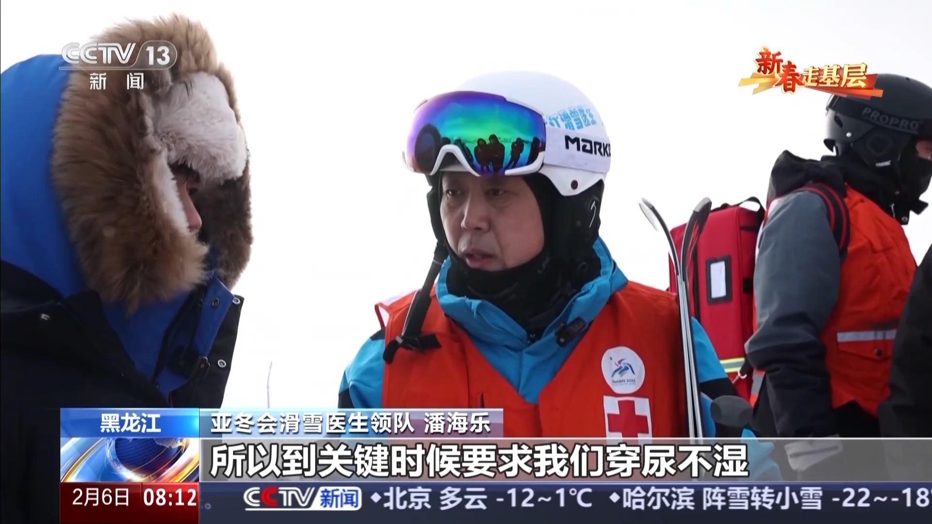 亚冬会滑雪医生领队 潘海乐:我们正规保障高坡度的这些滑雪医生要保障四五个小时都不能动,所以到关键时候要求我们穿带尿不湿。