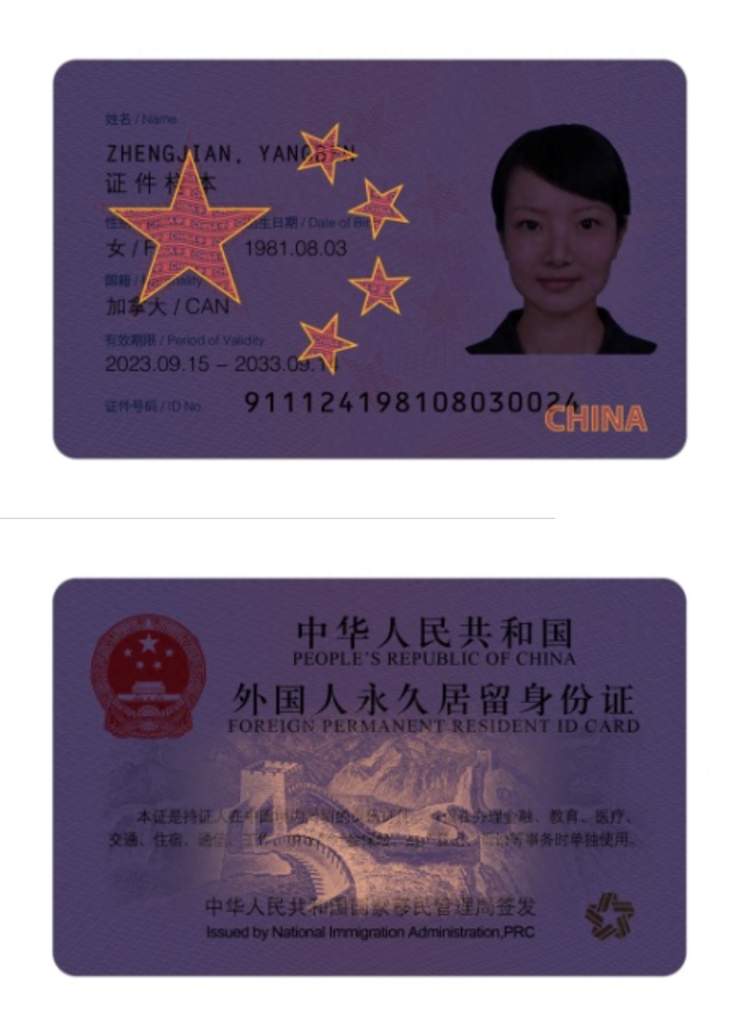 据介绍,新版外国人永久居留证在保持现版基本式样的基础上,参照居民身份证号码国际标准,内嵌非接触式集成电路芯片,证件号码由15位(3位拉丁字母+12位数字)调整为18位(17位数字+1位校验位),并将首位设置为“9”。作为外国人的身份标识码,区别于我国居民身份号码首位,更便于识别。
